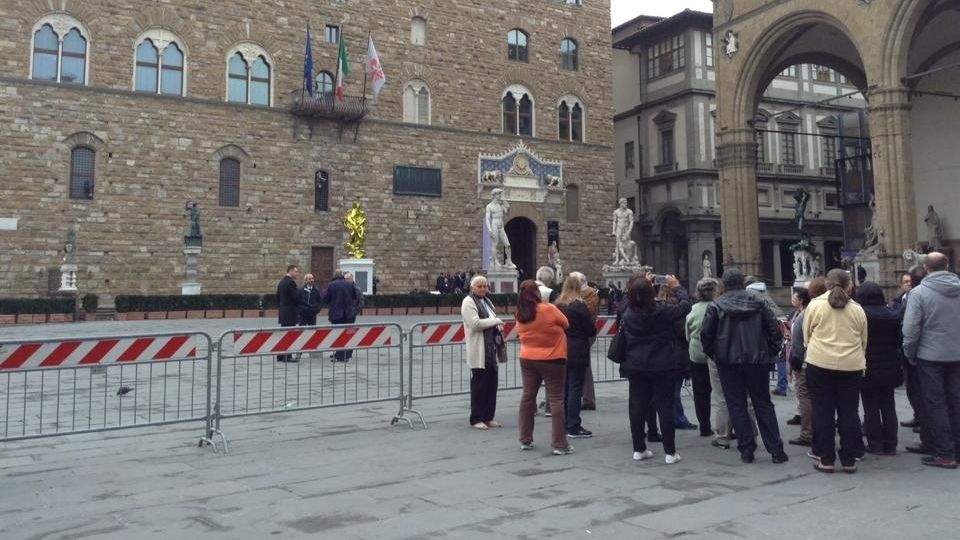 Palazzo Vecchio è blindato, massicci i controlli di sicurezza dentro e fuori dal Palazzo.