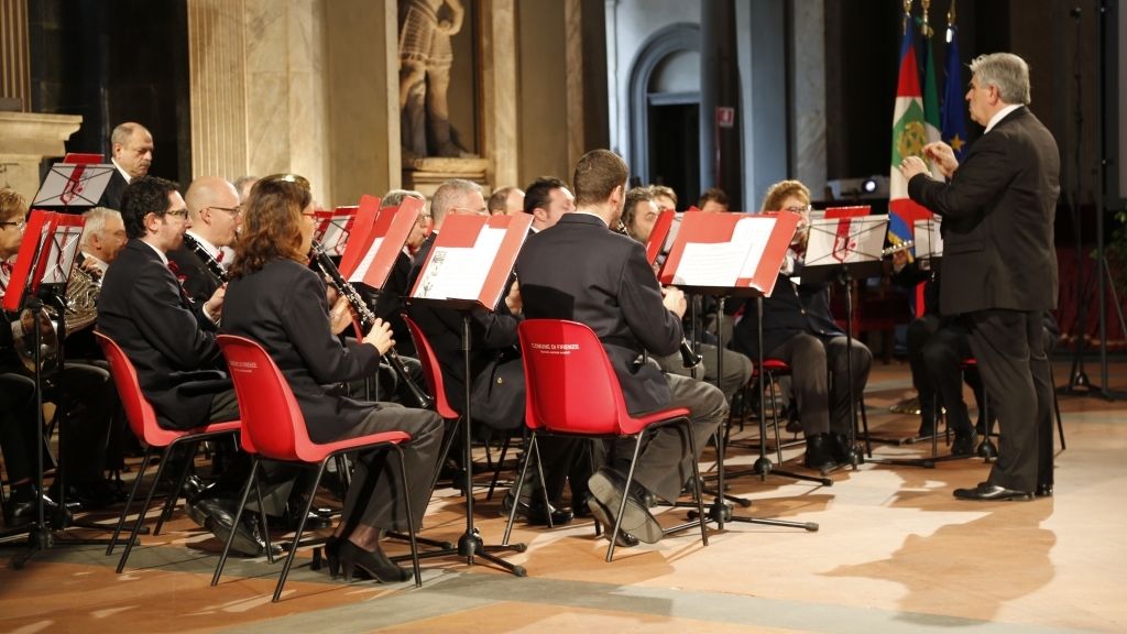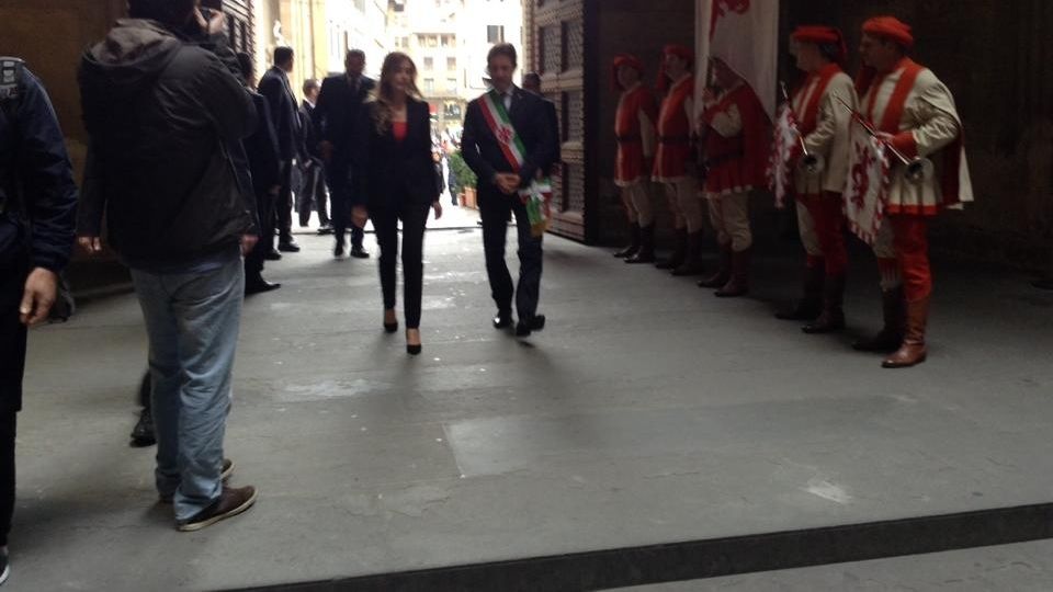 Ore 11.15 > Sergio Mattarella arriva in palazzo Vecchio. La cerimonia si apre con un minuto di silenzio per i fatti di Parigi seguito dall'inno di Mameli suonato dalla banda del Comune.