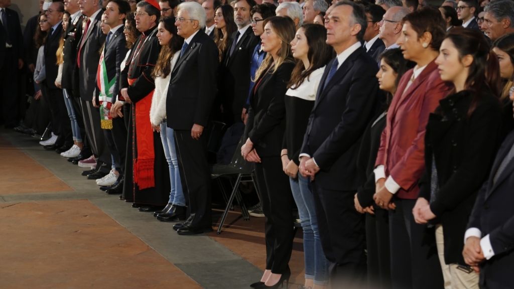 Ore 12.10 > Prende la parola Sergio Mattarella iniziando col ringraziamento per l'invito e ricordando fatti storici del paese e gli anni di Firenze come capitale, fino ad affrontare anche i fatti di Parigi ribadendo la natura di pace di Firenze.