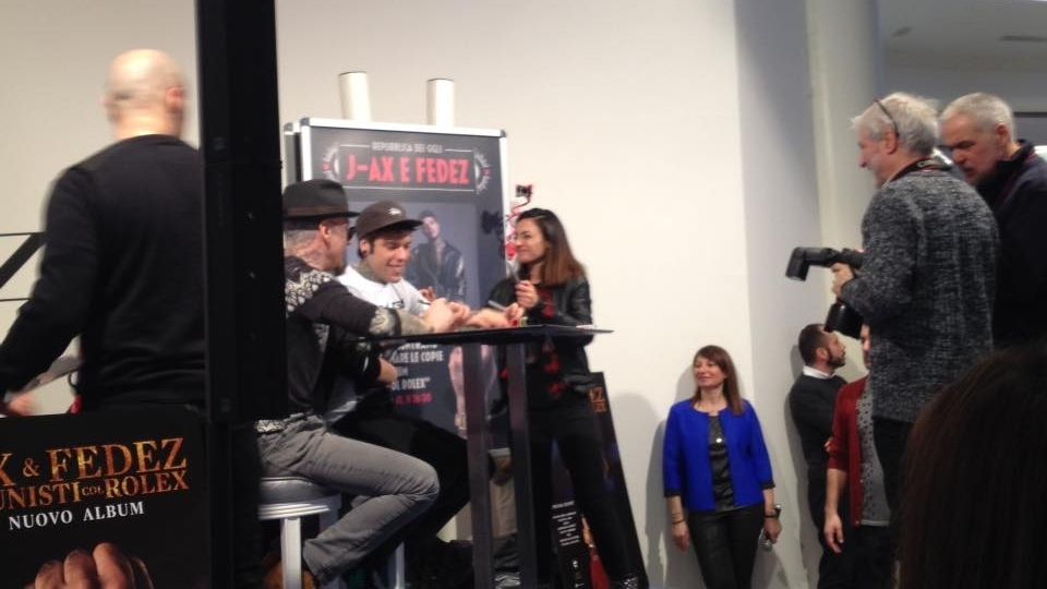 Oggi pomeriggio, giovedì 2 febbraio, i due rapper hanno incontrato i fan al centro commerciale di Campi Bisenzio per foto e autografi sul loro album "Comunisti col Rolex".