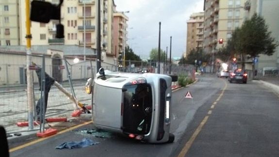 Firenze, auto ribaltata in via di Novoli: un ferito