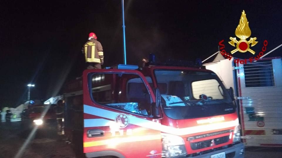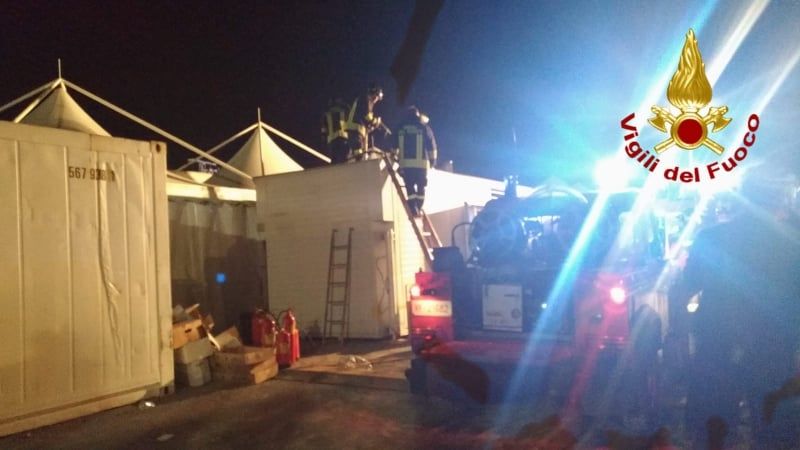 Le squadre dei vigili del fuoco, sul posto per effettuare il servizio di vigilanza al concerto, sarebbero intervenute estinguendo l'incendio.