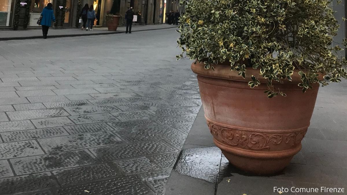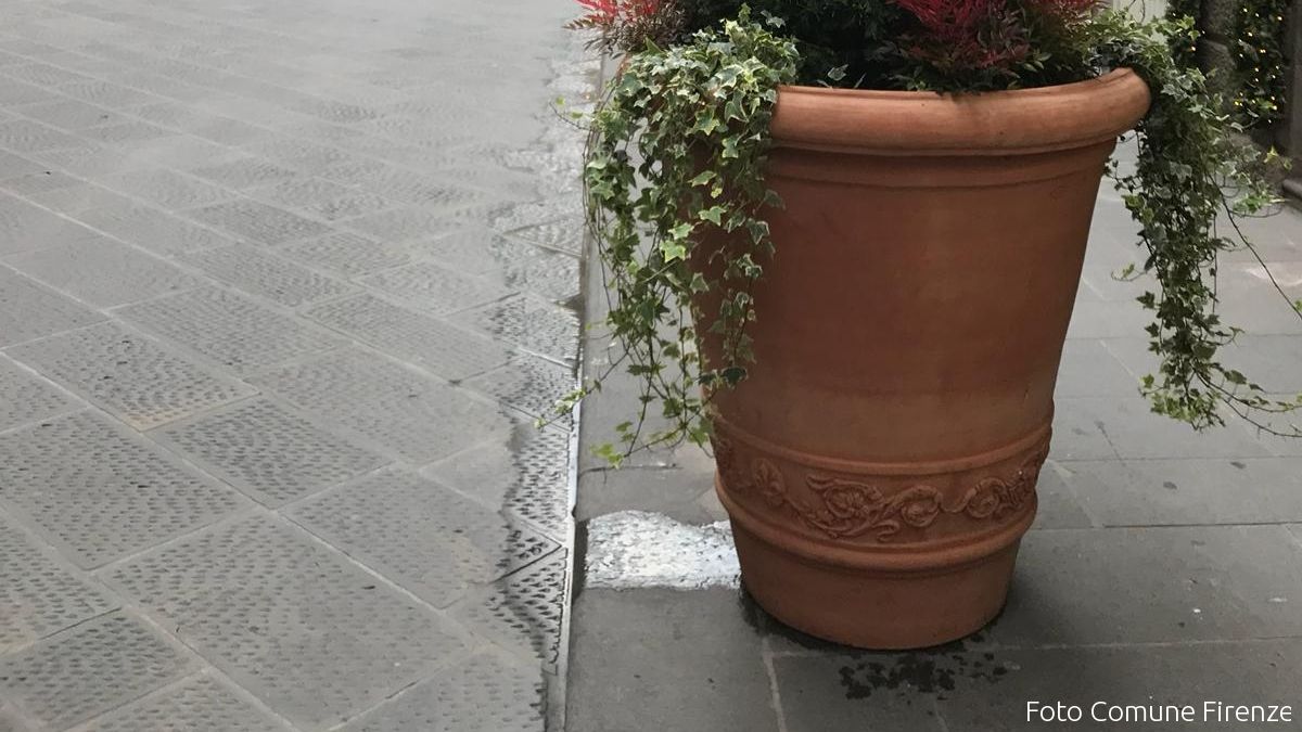 Firenze, in via Tornabuoni tornano le fioriere: posizionati 21 vasi in terracotta
