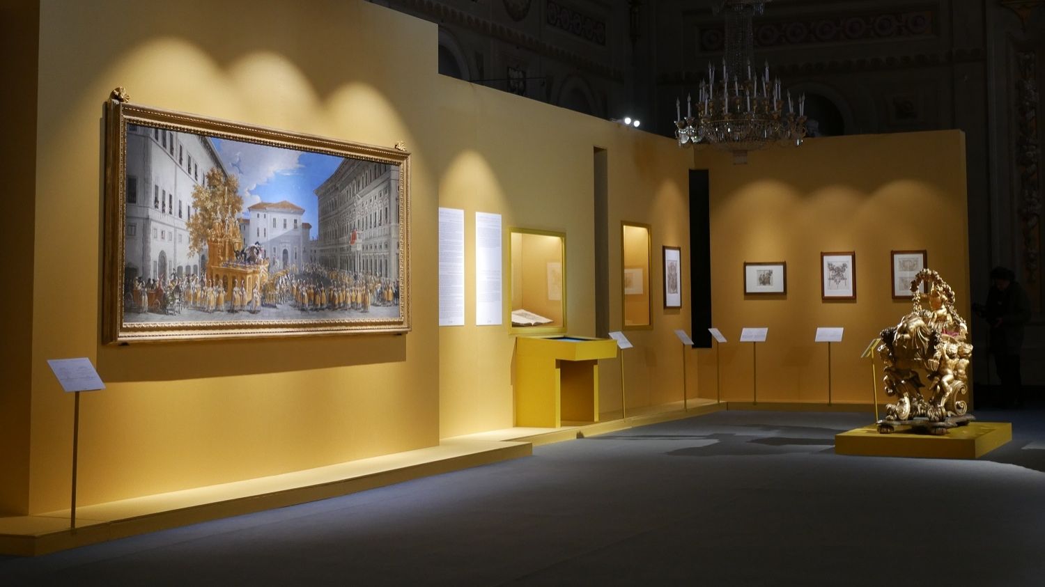 Per la prima volta viene presentata al pubblico un’inconsueta Scena carnevalesca del pittore Bartolomeo Bianchini, abitualmente conservata nei depositi e restaurata in occasione della mostra. Chiude trionfalmente la rassegna una monumentale Culla da parata - l’acquisto è in fase di completamento da parte delle Gallerie degli Uffizi - realizzata dalla bottega dei fratelli Schor per l’erede di una non ancor nota casata principesca romana. Nella culla, più affine ad un celebrativo gruppo scultoreo che ad un arredo funzionale, l’aristocratico neonato veniva presentato agli esponenti delle grandi casate romane e all’élite ecclesiastica.