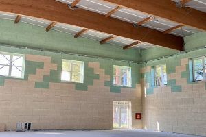 Si è staccata una parte di controsoffitto degli spogliatoi nella palestra
