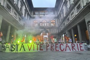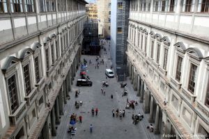 L'attore non si è negato ai molti visitatori che, riconoscendolo, gli hanno chiesto foto e autografi, ed alla fine del tour, durato circa tre ore, si è concesso anche un caffè sulla terrazza del museo affacciata su Piazza Signoria.