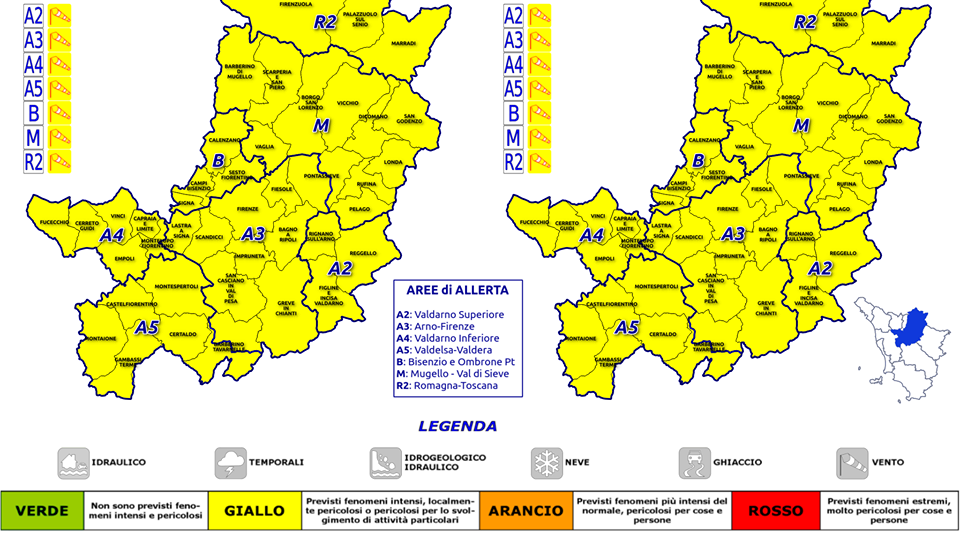 Il codice giallo per vento scatterà alle 16 di oggi, domenica 22 marzo, e andrà avanti fino alle 18 di domani, lunedì 23, su tutte le aree della Città Metropolitana di Firenze.