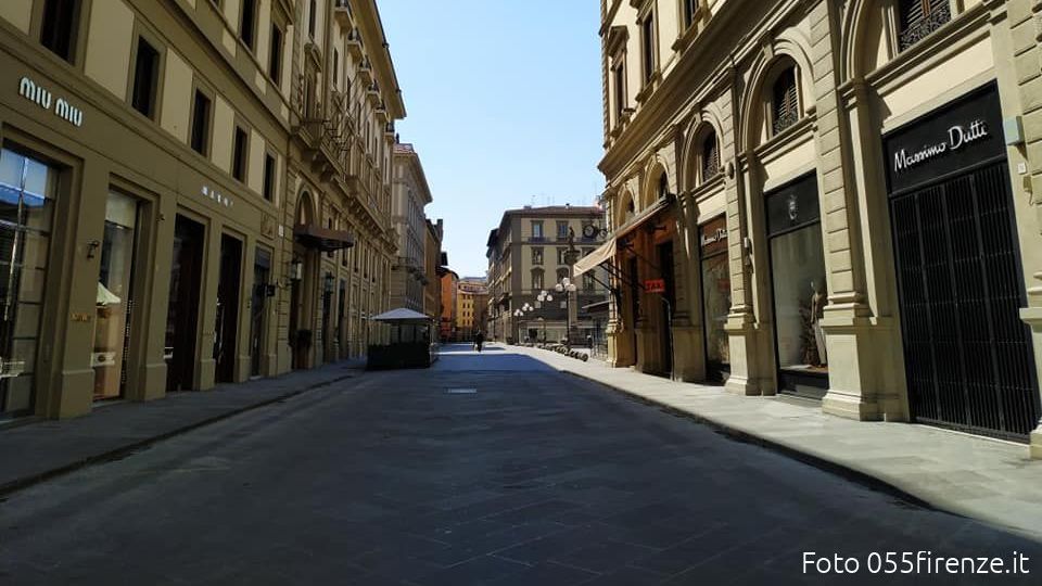 Tra i bandoni abbassati dei negozi, sono poche, pochissime, le persone in giro. Piazza Duomo, via Calzaiuoli, via Por Santa Maria, Ponte Vecchio... Non ci sono file davanti agli Uffizi o alla Galleria dell'Accademia, al loro posto solo qualche fila davanti ai piccoli supermercati del centro, come in Borgo San Lorenzo o appena oltre Ponte Vecchio.
