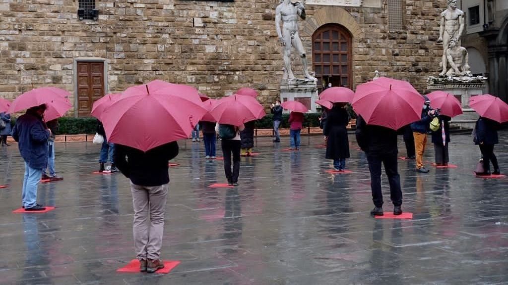Quelli presenti in piazza oggi, in rappresentanza dell’intera categoria, si sono disposti in modo in modo coreografico a forma di goccia (quella da cui nasce il mare, ma anche quella che fa traboccare il vaso) e hanno esposto dei cartelli che sono stati consegnati, riassunti in un apposito memorandum, alle istituzioni, rappresentate dall’assessore alle attività produttive di Firenze, Federico Gianassi, per sintetizzare ciò che, da sempre, offrono a tutti noi (valori culturali, economici, sociali) e ciò che richiedono al Governo Centrale e alle amministrazioni locali per superare questa fase così critica.