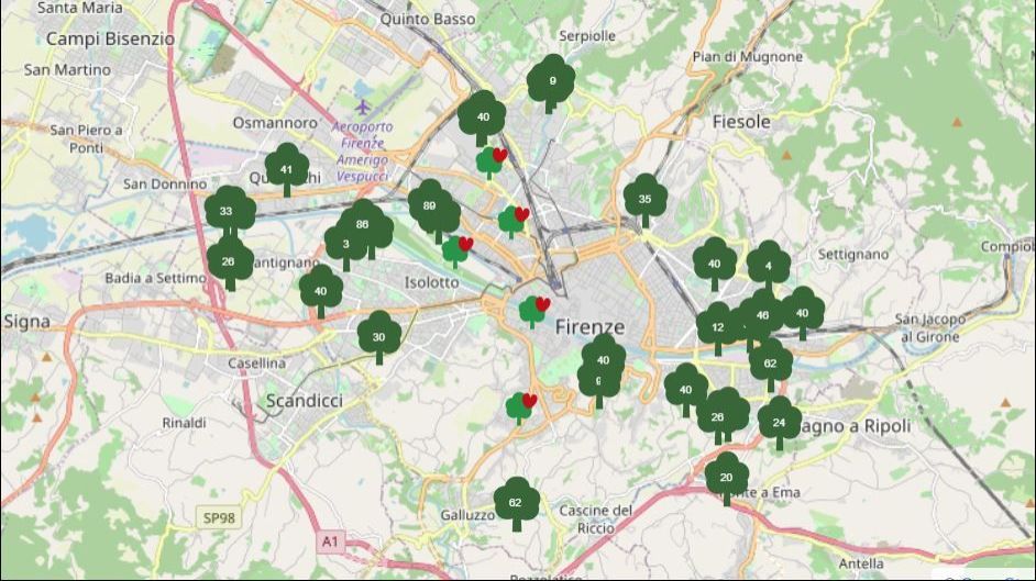 I cinque frutteti nasceranno nel giardino di Palazzo Vegni nel Quartiere 1, al parco del Mensola nel Quartiere 2, nel parco di Rusciano (area agricola) nel Quartiere 3, nel parco di San Bartolo a Cintoia per il Quartiere 4 e nel giardino del Lippi per il Quartiere 5. La piattaforma utilizzata sarà quella già utilizzata per ‘Dona un albero’ sulla quale saranno inseriti 40 alberi per ogni frutteto per un totale di 200 nuovi alberi.
