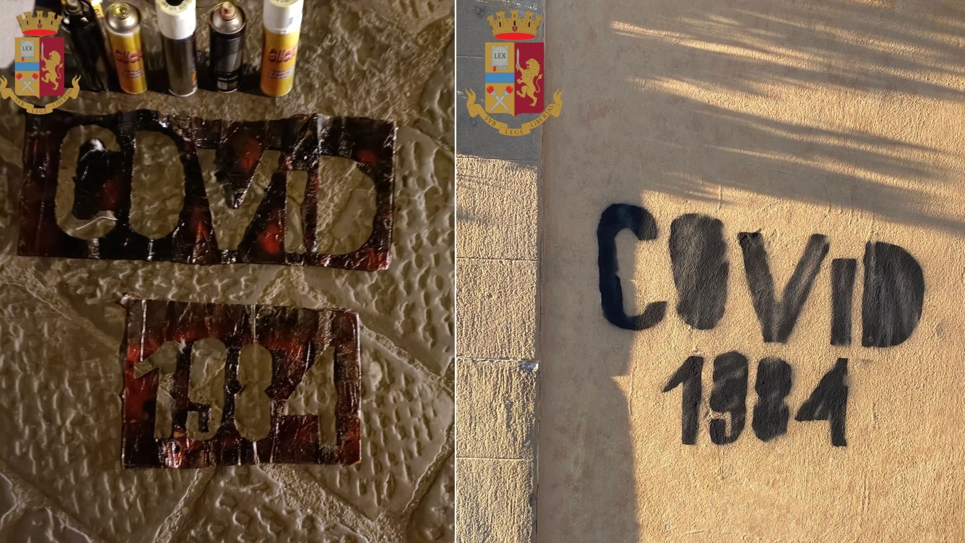 La notte dello scorso 19 gennaio, le due minori sono state sorprese da una pattuglia della DIGOS impiegata nel servizio di controllo del territorio mentre erano in procinto di realizzare, con uno stencil, la scritta “COVID 1984” in una strada del centro cittadino. Le due ragazze fiorentine, entrambe diciassettenni, erano in possesso, oltre che dello stencil con la scritta “COVID 1984”, anche di 5 bombolette di vernice spray, tutto materiale sottoposto a sequestro, continua la DIGOS.
