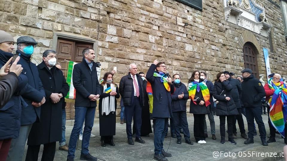 Ha preso la parola anche il presidente della Regione Eugenio Giani: "Questa è la risposta di una Firenze operatrice di pace e di una Toscana che vuole la pace come primo obiettivo. La pace è la base e il fondamento di ogni comunità e di ogni valore. La pace è l'elemento fondamentale sui cui la Toscana vive l'esperienza di comunità. Quello che sta succedendo deve risvegliarci. Sento parlare di quanto ci costerà l'energia ed è vero, ci costerà, ma ci sono valori non negoziabili. Siamo totalmente solidali con il popolo ucraino e con quello che sta vivendo. Quando vengono messe in discussioni libertà e democrazia noi siamo per chi lotta per questo. Se rileggiamo la storia, questo accadeva anche nel 1938 e 1939, e fu il primo passo di una storia tragica che ci ha provato alla seconda guerra mondiale. In Europa occrre determinazione per condannare quello che sta facendo Putin. Siamo solidali anche con o russi che sono scesi in piazza e sono stati repressi".