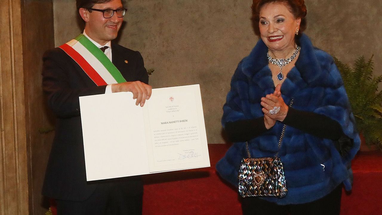 Le Chiavi della città di Firenze a Maria Manetti Shrem. La mecenate e filantropa Maria Manetti Shrem ha ricevuto oggi dal sindaco Dario Nardella le Chiavi della città, riproduzione fedele delle chiavi delle antiche porte di Firenze.