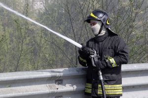 È in corso l’intervento dei Vigili del Fuoco, con due squadre e 4 automezzi, per eliminare i focolari e per la bonifica dell’area interessata dall’incendio.