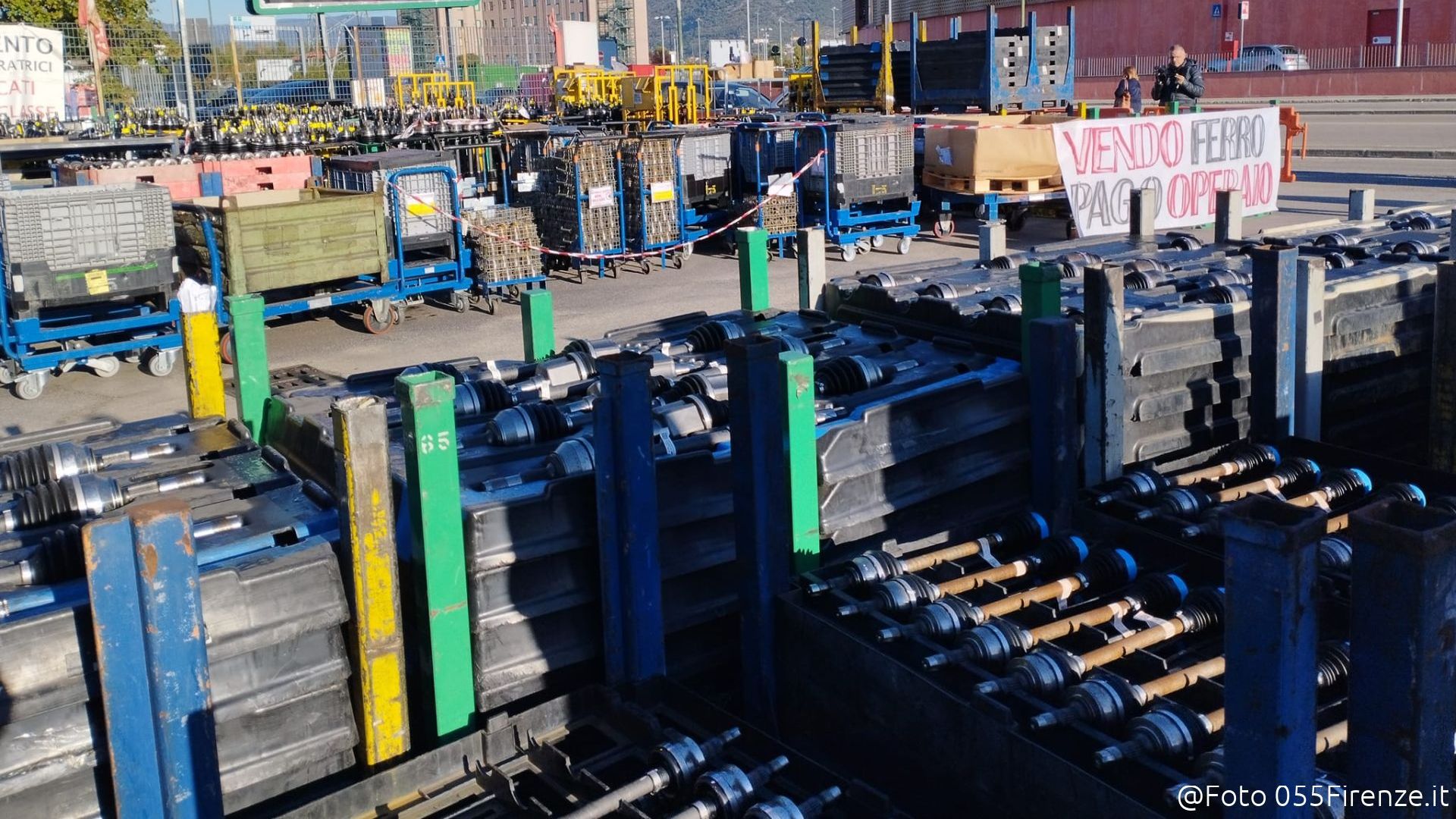 Nel piazzale davanti allo stabilimento ci sono blocchi di 'rottami'. "Questa è la mostra permanente del made in Italy, che è stato trasformato in rifiuto", dice Dario Salvetti, Rsu ex Gkn. "Grazie di essere qui di lunedì mattina. Ci chiedete come va, finché siamo qua non va ne bene ne male e quando non saremo più qua sarà andata molto bene o molto male. Qua ci sono un presidio e una lotta perché manca il lavoro, non manca il lavoro perché c'è la lotta. Che qua manchi un piano industriale e che non ci sia nessuna garanzia non lo diciamo noi. Oggi non esistono ne istituzioni ne organizzazioni sindacali che diano credito a questa operazione, la cassa integrazione è stato l'INPS a non autorizzarla, non noi", continua Salvetti.