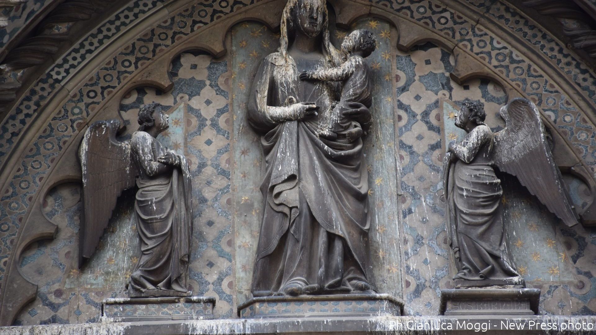 Vincenzo Vaccaro, consigliere dell’Opera del Duomo spiega come: “La novità che abbiamo trovato in questo restauro della Porta dei Cornacchini è una notevole presenza di policromia sulle statue della Madonna col Bambino e Angeli adoranti. Questo ci fa capire come in passato tutte le sculture della cattedrale erano policrome, ma nel tempo, forse nell’Ottocento o nei primi del Novecento, la policromia è andata perduta per restauri che non tenevano conto della conservazione come invece facciamo oggi”.