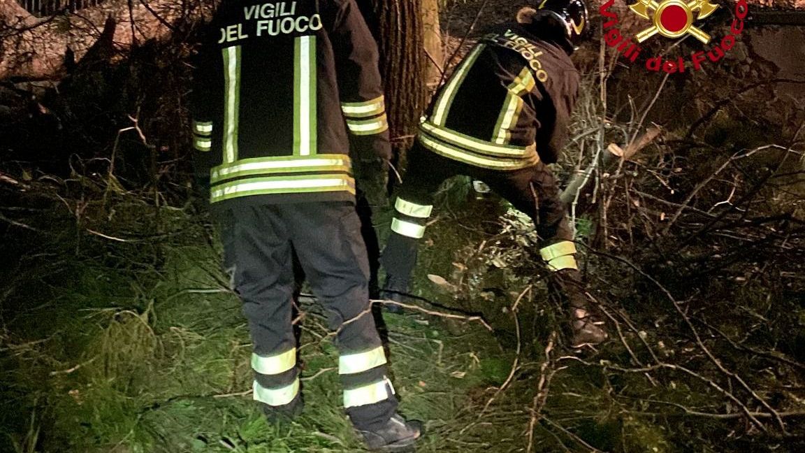 Scandicci, cade un pino sulla carreggiata: circolazione bloccata, pompieri sul posto
