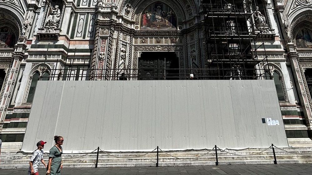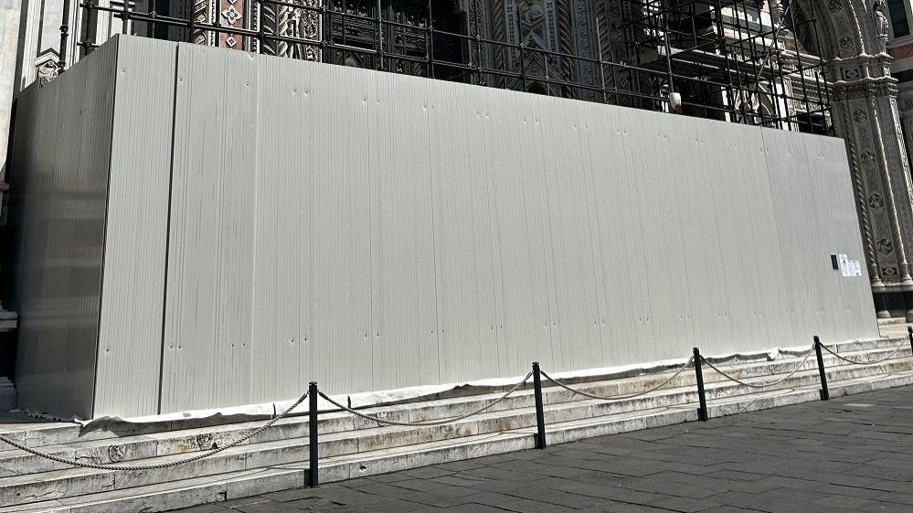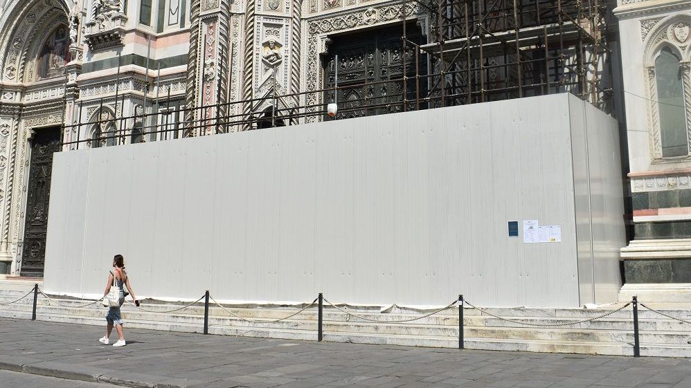 Firenze, iniziato il montaggio di un ponteggio sulla facciata del Duomo