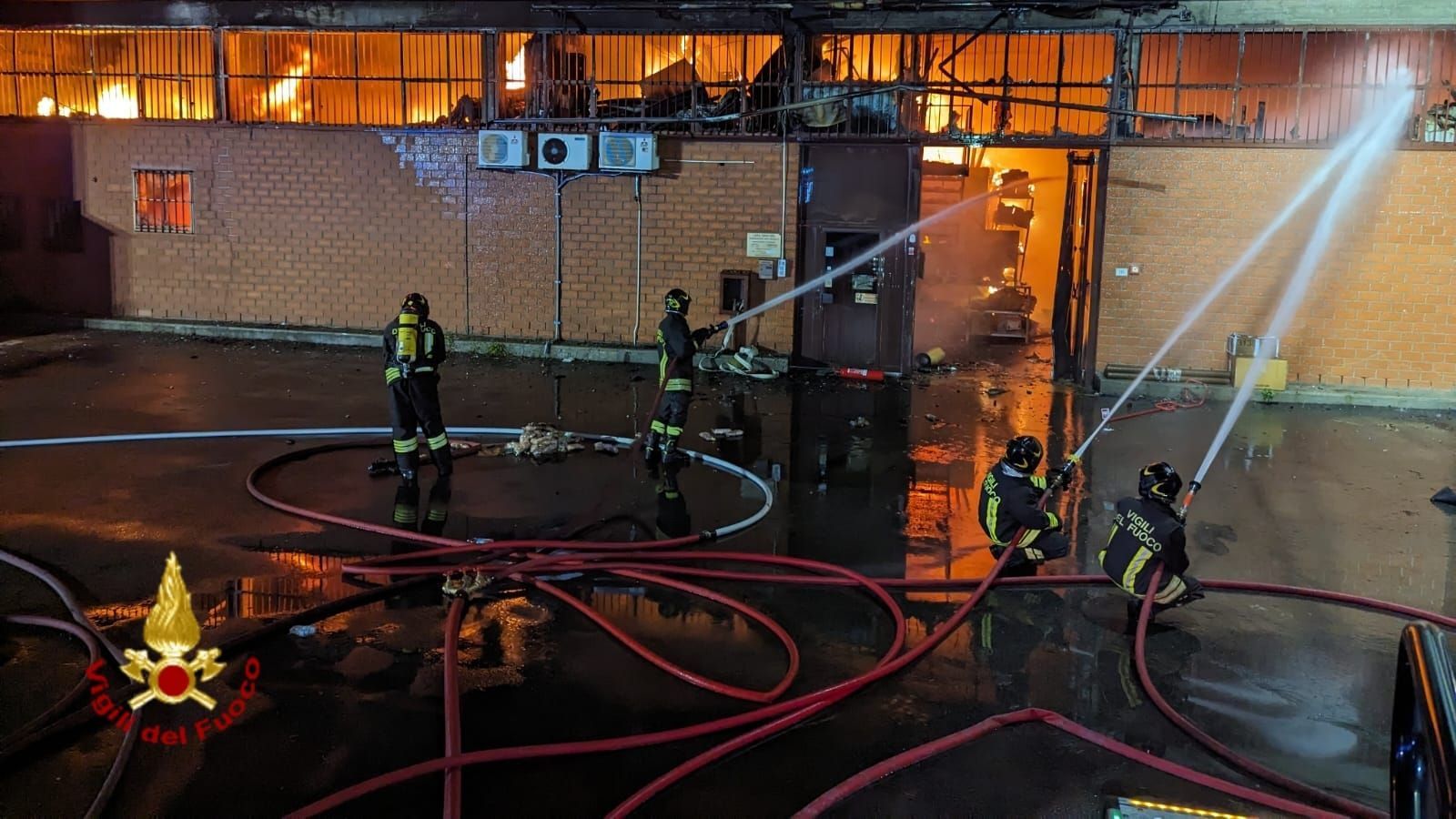 L'incendio ha interessato due attività industriali. L'opera dei vigili del fuoco ha permesso di salvaguardare le attività vicine. L'incendio è sotto controllo dalle ore 5 di questa mattina, come si apprende dai pompieri. L'intervento è ancora in corso.