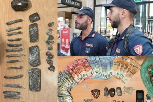 All’esito delle perquisizioni personali è stato possibile rinvenire nella disponibilità di entrambi: 10 dosi di cocaina (poco meno di 5 grammi); 103 frammenti di crack (circa 35 grammi); 4 dosi di eroina (poco più di 1,5 grammi); 16 dosi di hashish (quasi 40 grammi) e più di 1000 euro in contanti (verosimile frutto dell’illecita attività).