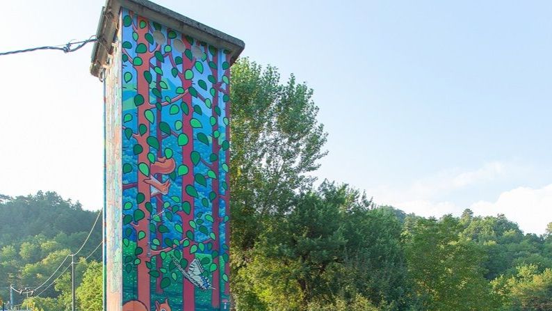 La cabina elettrica a torretta di E-Distribuzione, società del Gruppo Enel, all’interno dell’area dove sorge la struttura recentemente riqualificata del caseificio Faggiola a Palazzuolo sul Senio, diventa patrimonio artistico a disposizione del territorio.