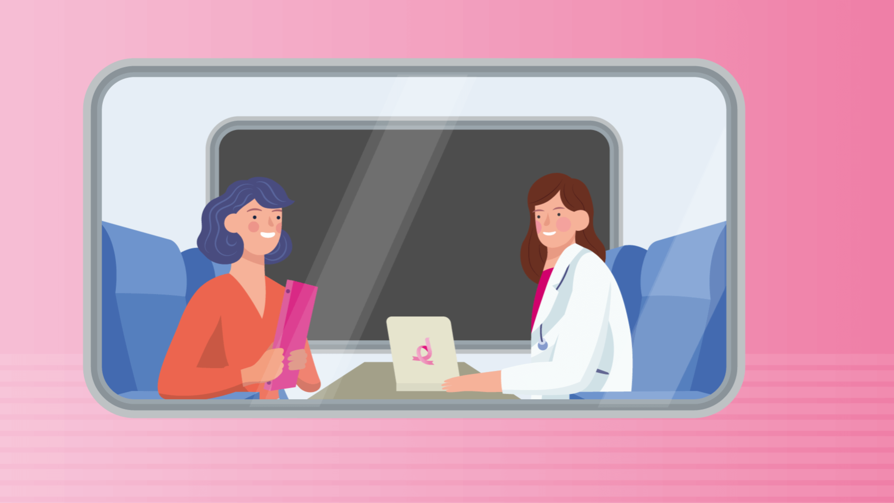 Volontari e medico sui treni per la prevenzione del tumore al seno