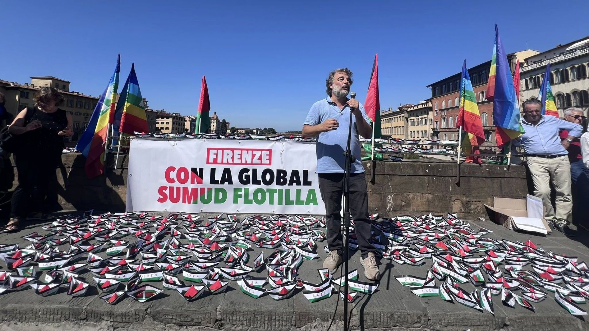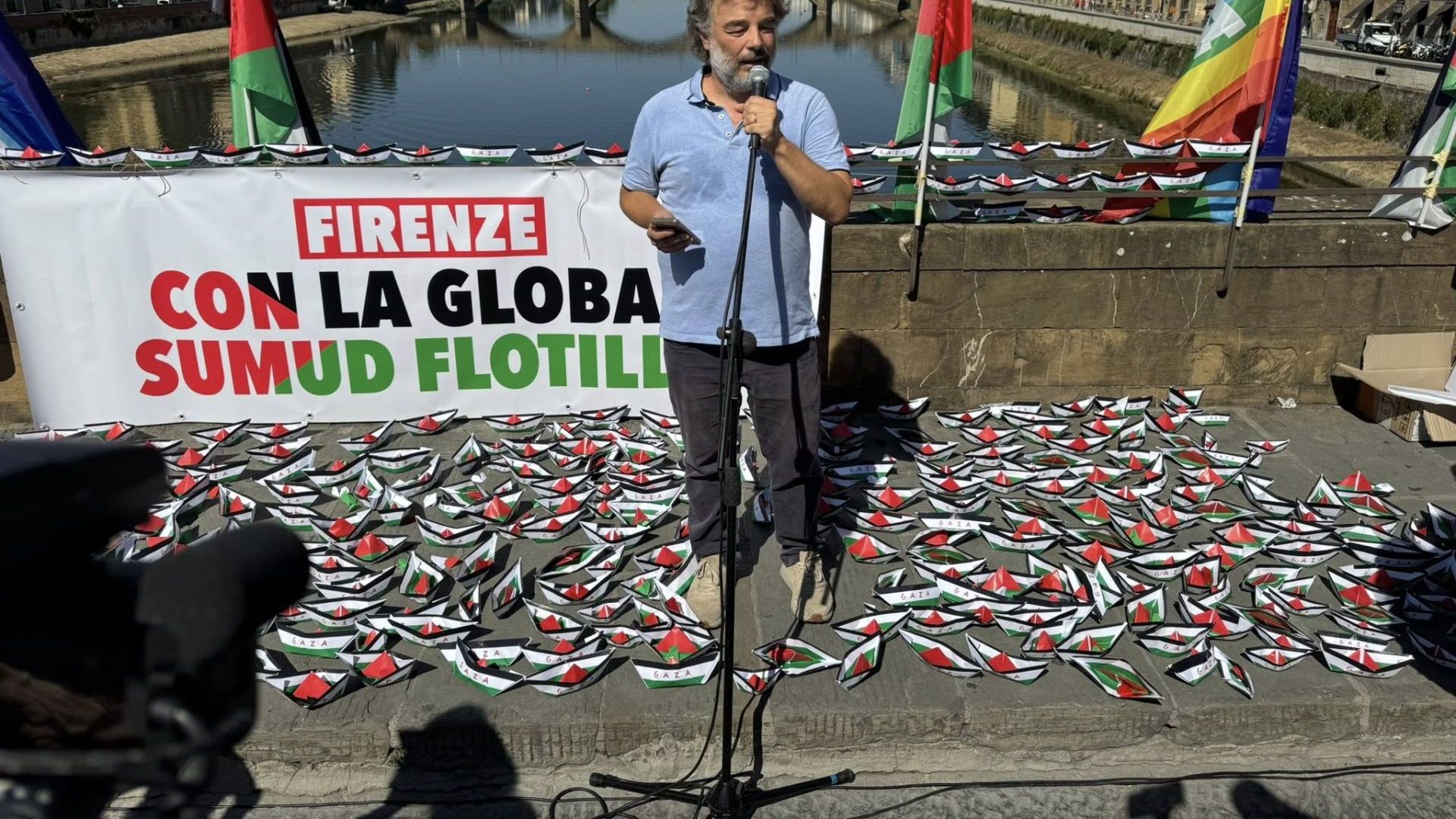 "Sono barche simboliche perché anche Firenze è su quella flottiglia, Firenze è con loro, Firenze sta manifestando insieme a loro", ha spiegato Bernardo Marasco, segretario generale Cgil Firenze, secondo cui "questo atto di solidarietà è un atto politico che chiede con forza la fine del massacro, che è la condizione che dobbiamo costruire politicamente. I governi non lo fanno, lo faranno le mobilitazioni, lo farà l'opposizione israeliana a Netanyahu, lo farà chi si organizza e chi costruisce la solidarietà"
