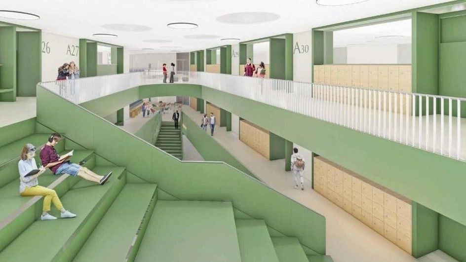 Inoltre il nuovo campus è pensato in dialogo con il quartiere, grazie a palestre, un parco urbano a carattere sportivo e un centro civico.