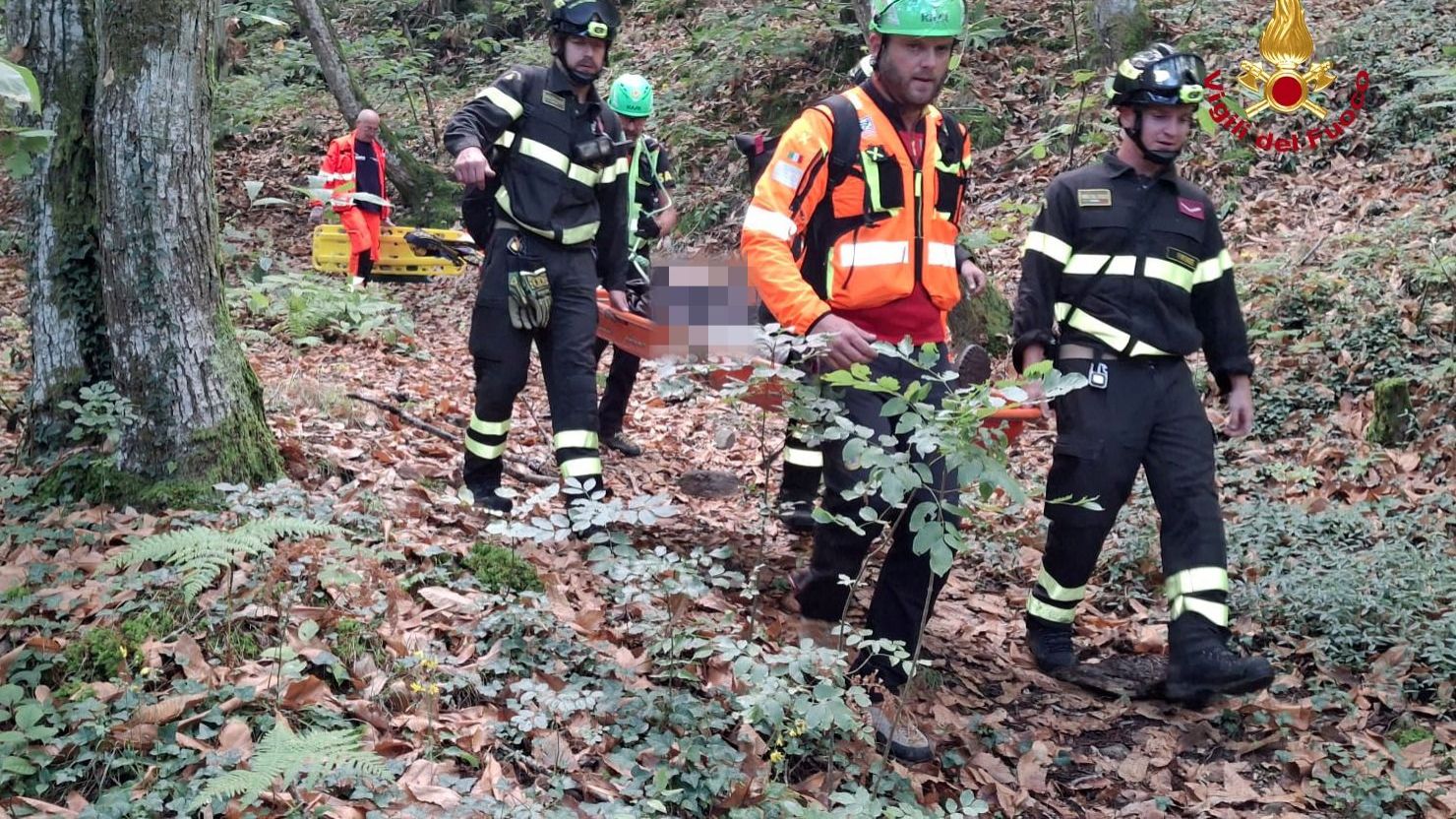 Si infortuna mentre cerca funghi in una zona impervia, soccorsa nel bosco dai pompieri