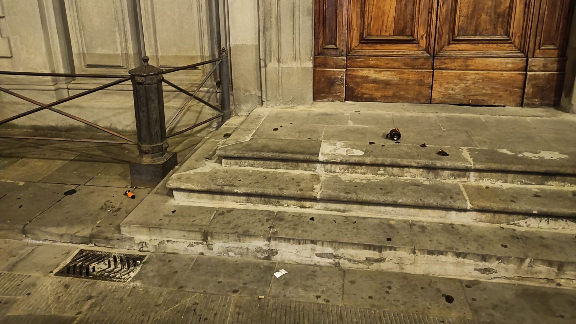A raccontare l'accaduto, con tanto di nottata al pronto soccorso, è Calamandrei su Facebook: "Qualcosa non sta funzionando… Esco con amici per un aperitivo, pieno centro (via Martelli), mentre stiamo parlando del più e del meno un “umano” tira una bottiglia di birra contro il portone della chiesa di San Giovannino dei Padri Scolopi (via Martelli angolo via dei Gori) che ovviamente va in mille pezzi. Non contento rovescia in strada due cestini del sudicio (che pesano un quintale l’uno) in mezzo di strada, inveendo contro non so chi o cosa, e proseguendo la sua strada. Io non riesco a girarmi dall’altra parte. Prendo il telefono chiamo il 112, mi alzo dal tavolino, e seguendolo a distanza racconto l’accaduto al 112. Il tizio insospettito si gira mi viene incontro, e inizia ad infamare, parte l’alterco. Sempre mentre sono al telefono col 112, mi prende a seggiolate sulla schiena e sul braccio. Arrivano due volanti: una lo perquisisce e lo porta via, l’altra prende dichiarazioni, documenti, e testimonianze".