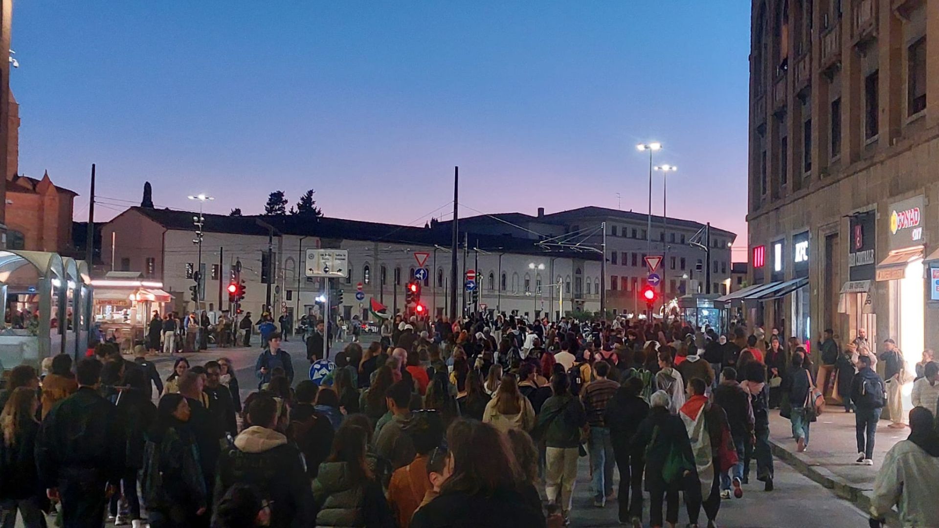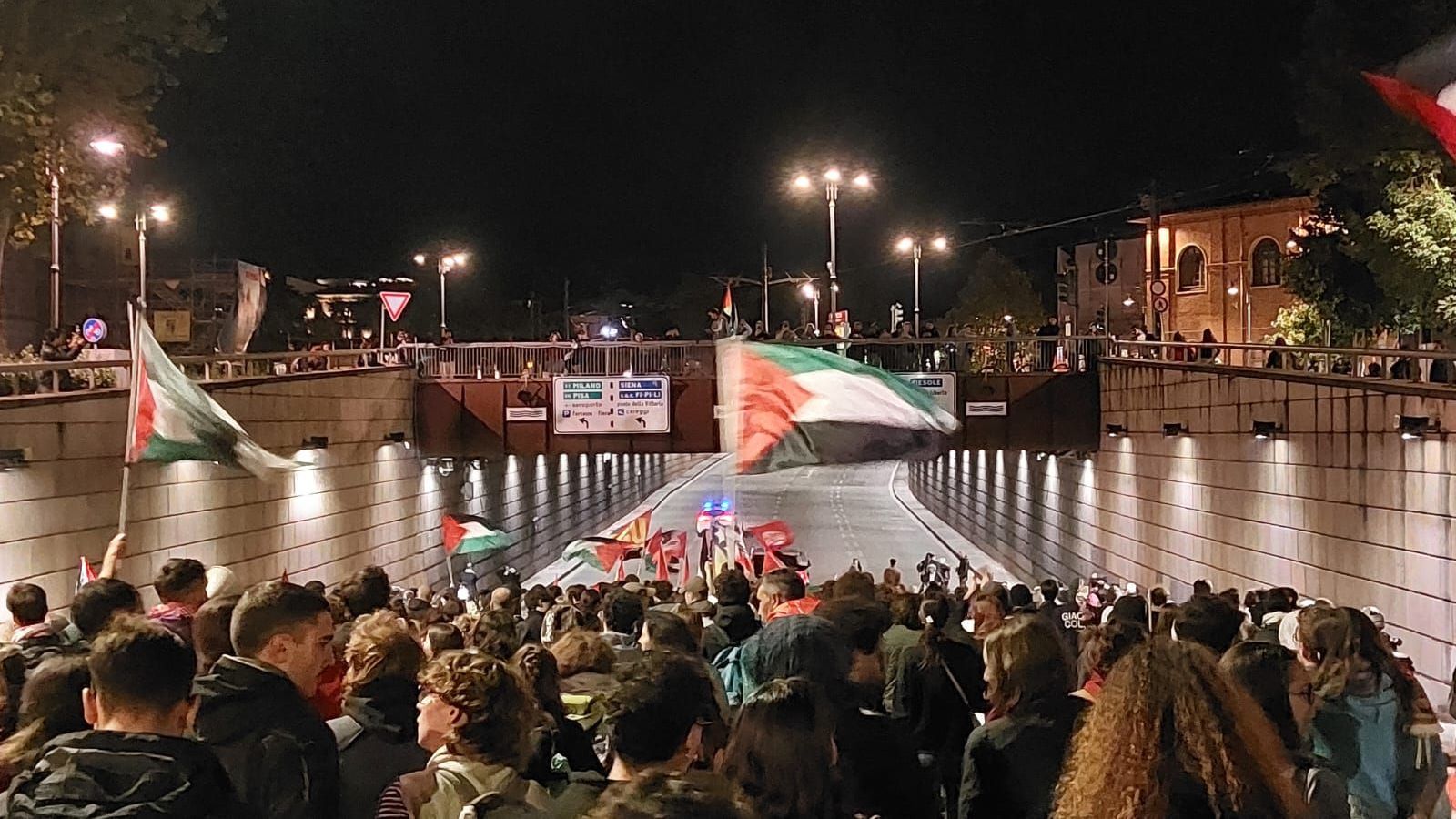 Alle 20.45 i manifestanti si trovano ancora dentro la stazione e i binari restano bloccati, poco dopo le 21 hanno iniziato ad uscire dalla rampa laterale della stazione e si sono diretti sui viali, passando dal sottopasso della Fortezza.