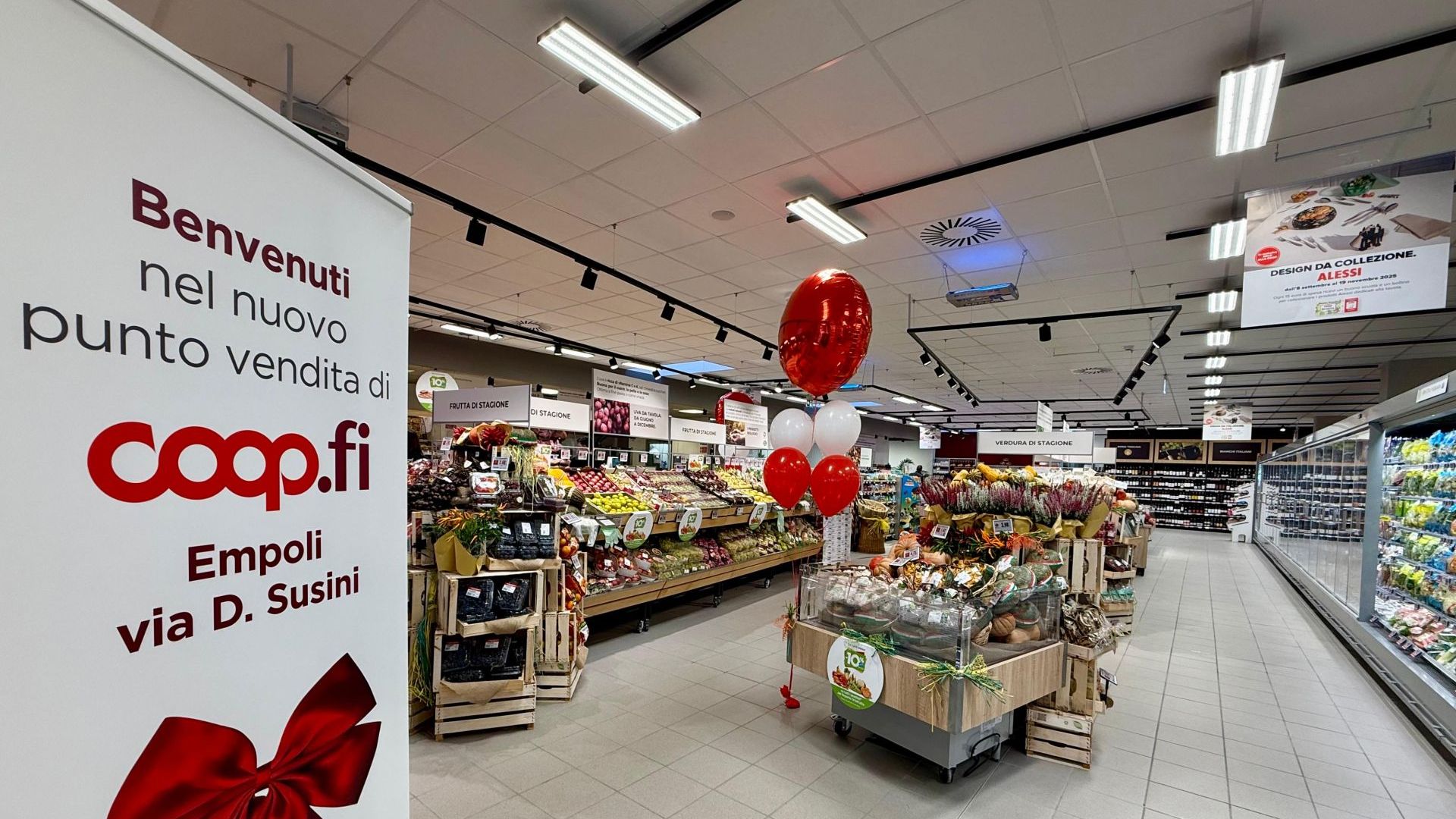 Il rinnovato Coop.fi nasce all’insegna dell'innovazione, sia dal punto di vista dei servizi a soci e clienti che dell'efficienza energetica: dotato di casse salvatempo e casse fai da te, il punto vendita vede un allestimento accogliente e improntato alla massima fruibilità degli spazi interni, un assortimento attento al territorio e alla convenienza. Il tutto con una particolare attenzione all'ascolto e al servizio, con un presidio costante dei banchi freschi di forneria, gastronomia e rosticceria, pesce e carne, dove è previsto anche il banco servito al taglio.