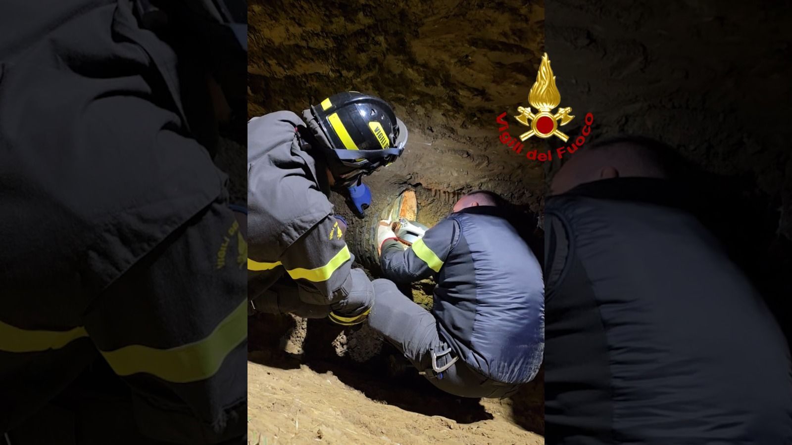 Il cane si era infatti accidentalmente infilato in una tubazione liscia del diametro di circa 45 /50 centimetri che si trovava ad una profondità di circa un metro e mezzo. I Vigili del Fuoco con una squadra e con l’ausilio di un escavatore di un privato hanno iniziato ad effettuare una prima apertura sul terreno.