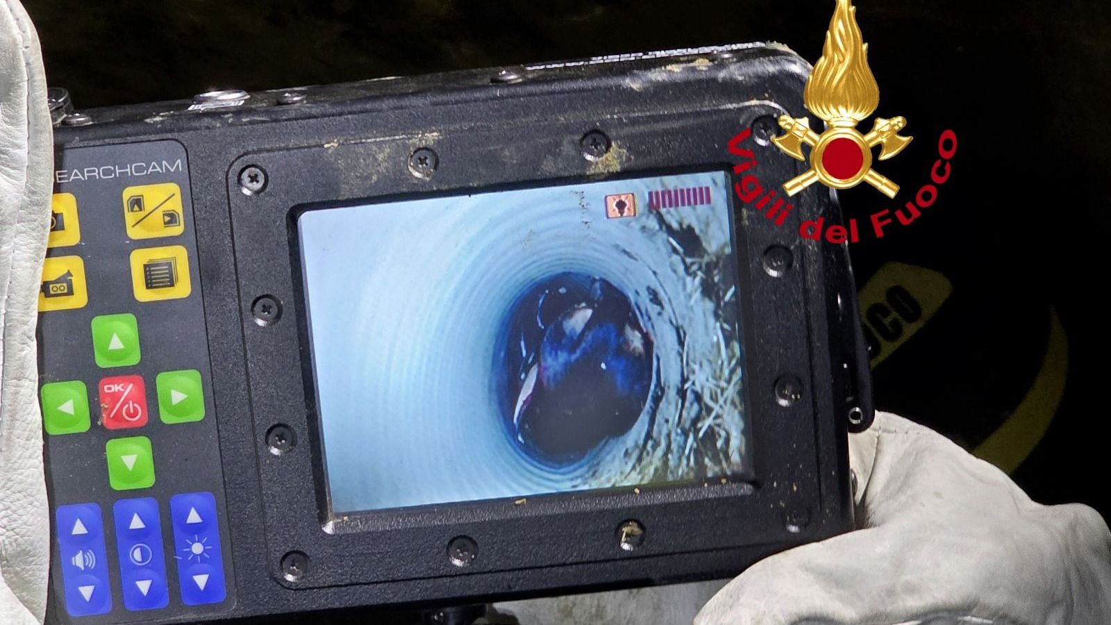 Da qui sono state effettuate delle ispezioni con una search-cam, che ha permesso di verificare che l’animale era più avanti. Così è stato effettuato un secondo scavo dove la tubazione si era schiacciata imprigionando il cane.