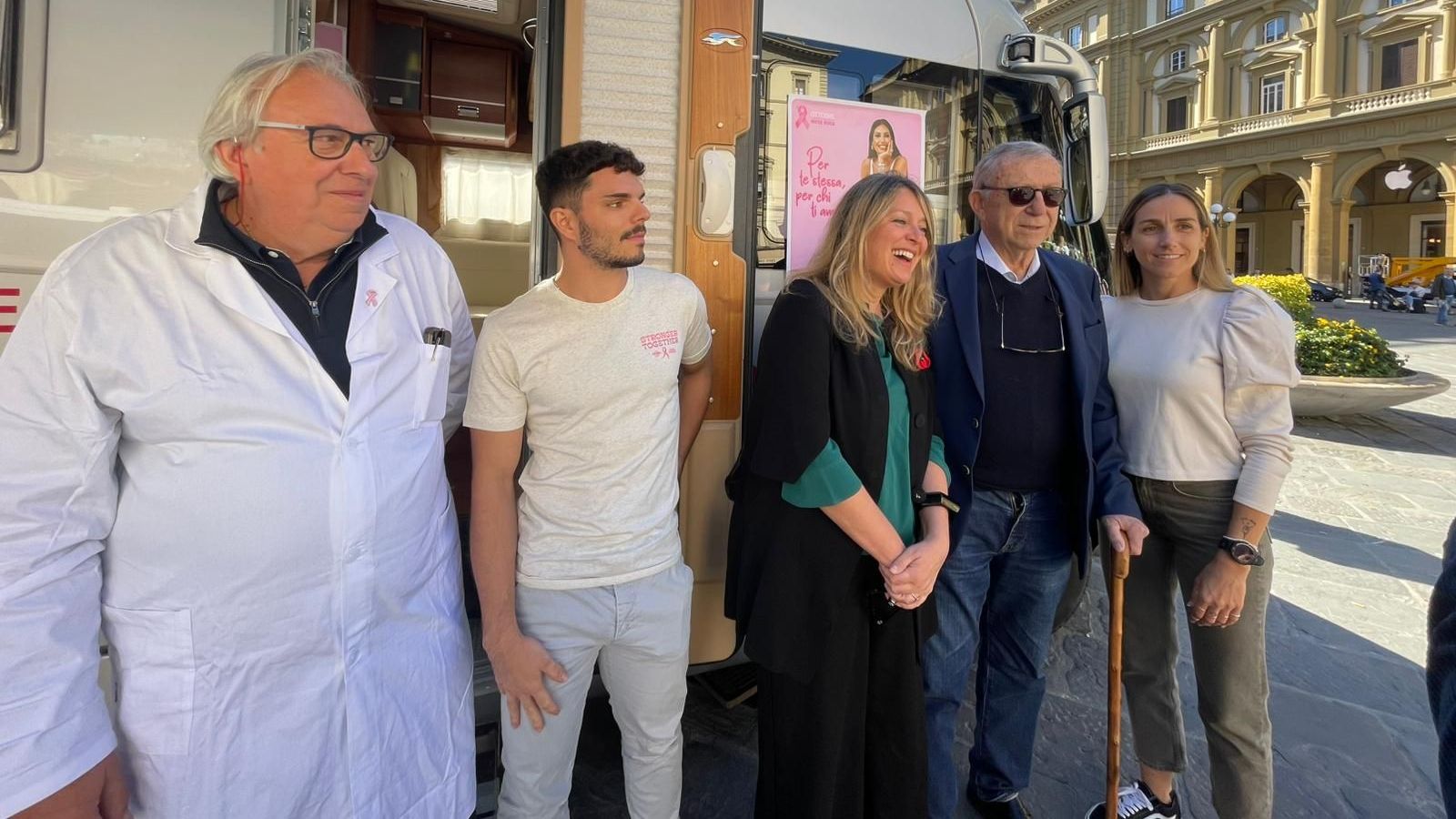 Al vis oggi da Piazza della Repubblica la Campagna Nastro Rosa Lilt Firenze 2025, con le prime visite senologiche gratuite a bordo dell’unità mobile della Lega Italiana per la Lotta contro i Tumori.