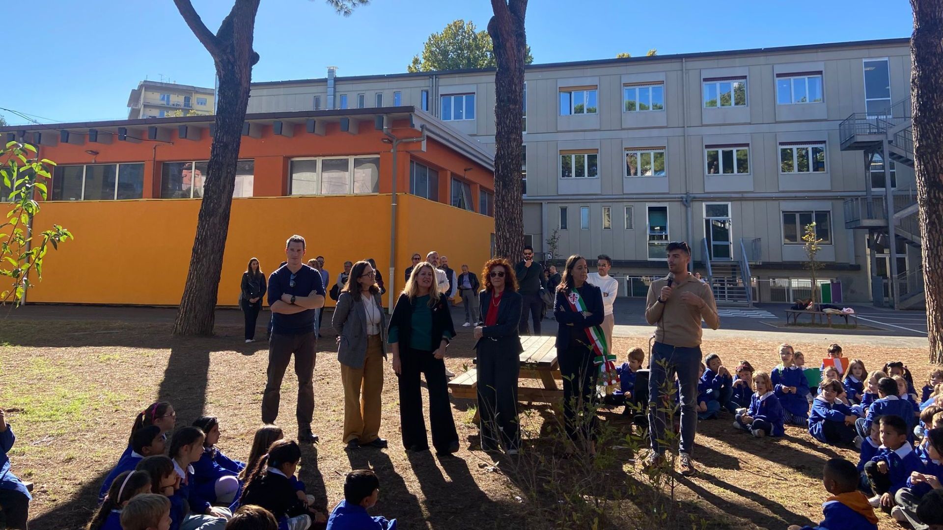 Firenze, inaugurato il nuovo giardino alla scuola Rodari: alberi da frutto, orti e giochi disegnati