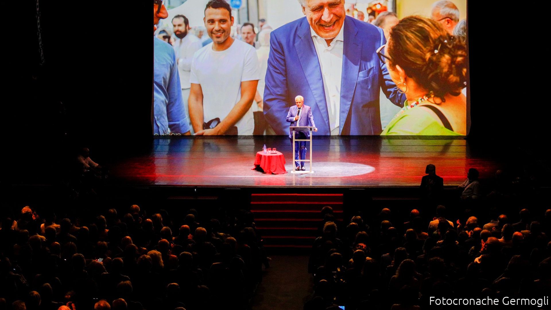 "La Toscana per te": queste le parole a dare il titolo alla serata di chiusura della campagna elettorale di Eugenio Giani, che ieri sera ha riempito la platea del Teatro Cartiere Carrara di Firenze.