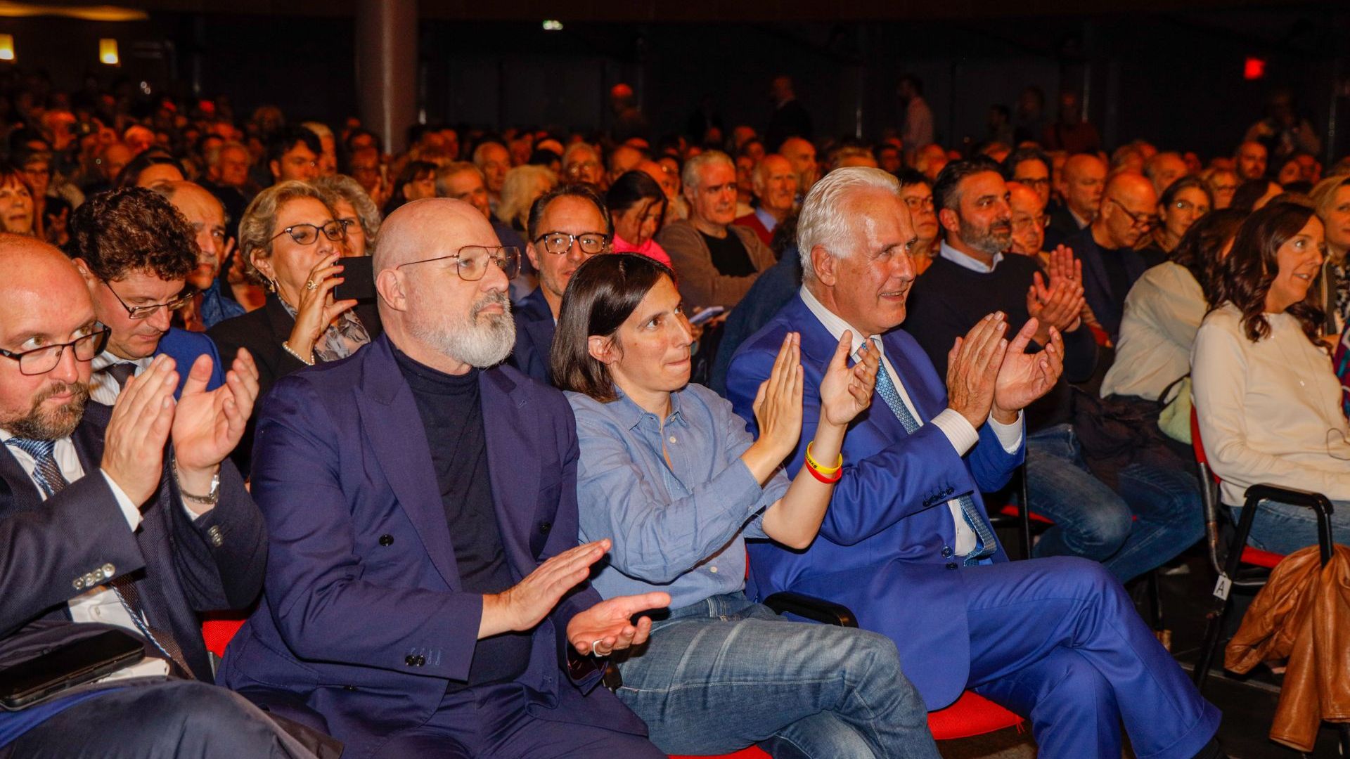 In platea anche tanti amministratori locali, tra cui la sindaca di Firenze Sara Funaro. "Io mi sento sindaco tra i sindaci, sono la mia forza", dice Giani.