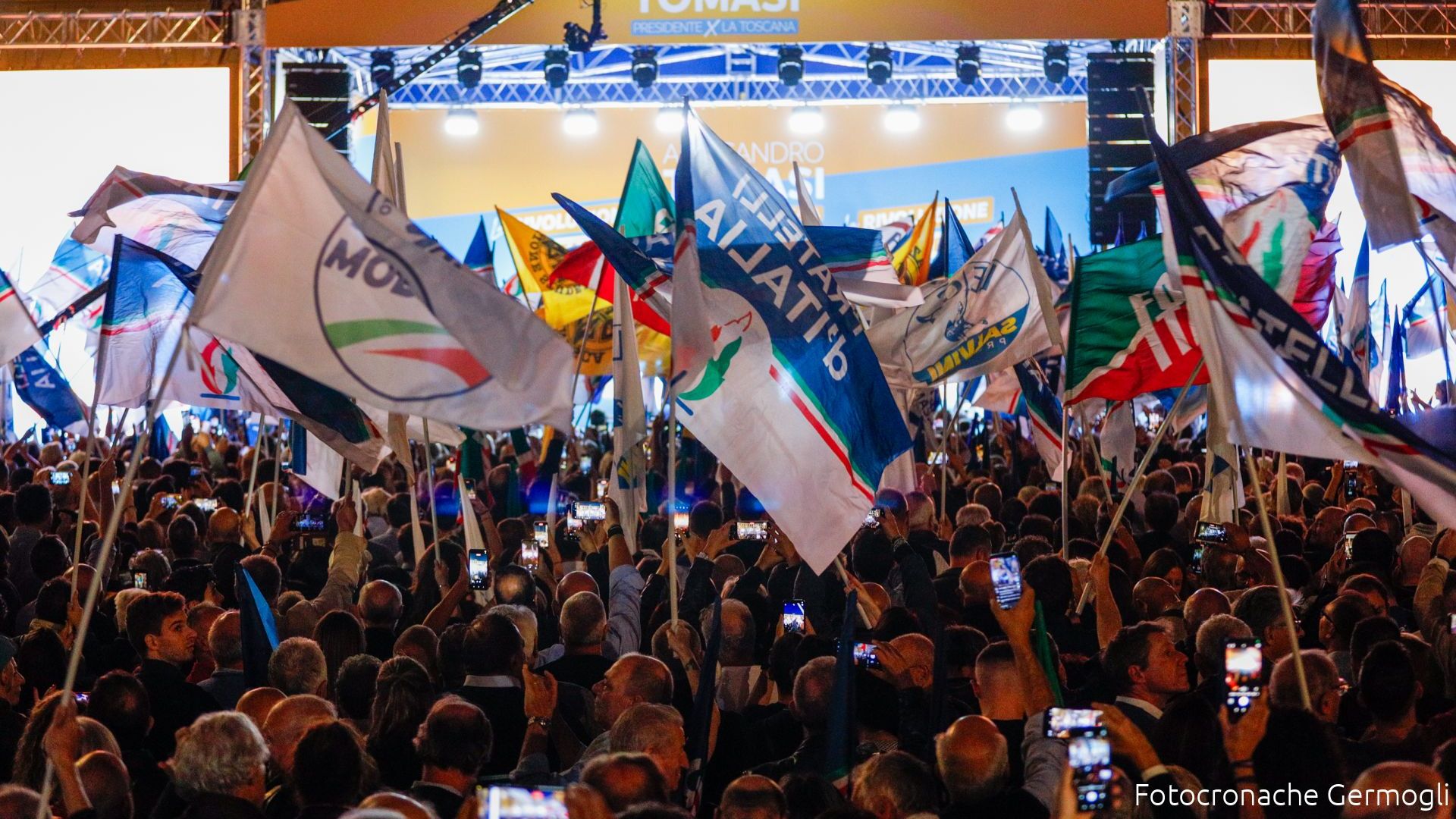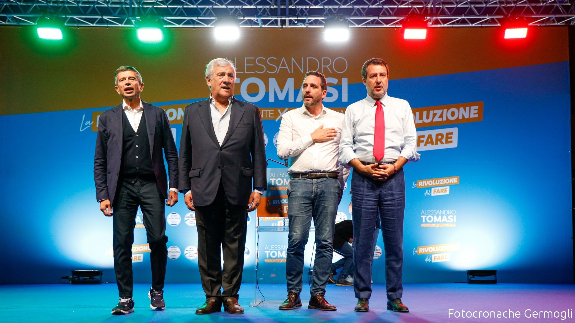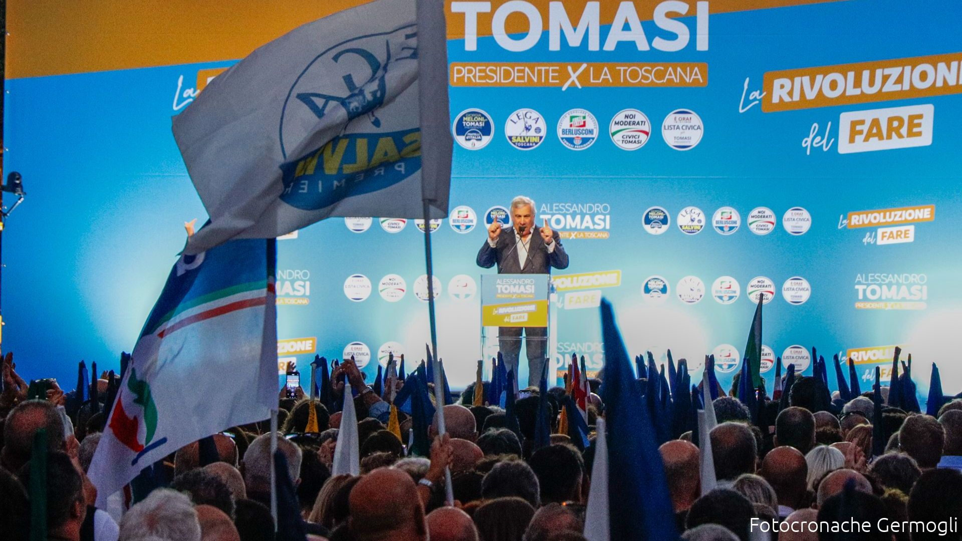 Dopo Tomasi parla Antonio Tajani. "Abbiamo vinto a Grosseto, a Siena, a Pisa, a Pistoia, perché non possiamo vincere anche le regionali in Toscana? Bisogna crederci. Il centrodestra con le sue differenze è sempre unito, siamo un'alleanza politica, non una coalizione elettorale, i nostri avversari non sono neanche in grado di fare un comizio insieme. E' finito il centrosinistra, è rimasta solo la sinistra. Possiamo vincere perché andiamo a rendere i voti del centro che la sinistra ha lasciato liberi. Noi vogliamo dare risposte e farvi capire che c'è una classe dirigente alla quale affidarsi. Noi cerchiamo la vostra fiducia, dall'altra parte c'è la minaccia, o voti per me o non lavori. Questa è una battaglia di libertà".