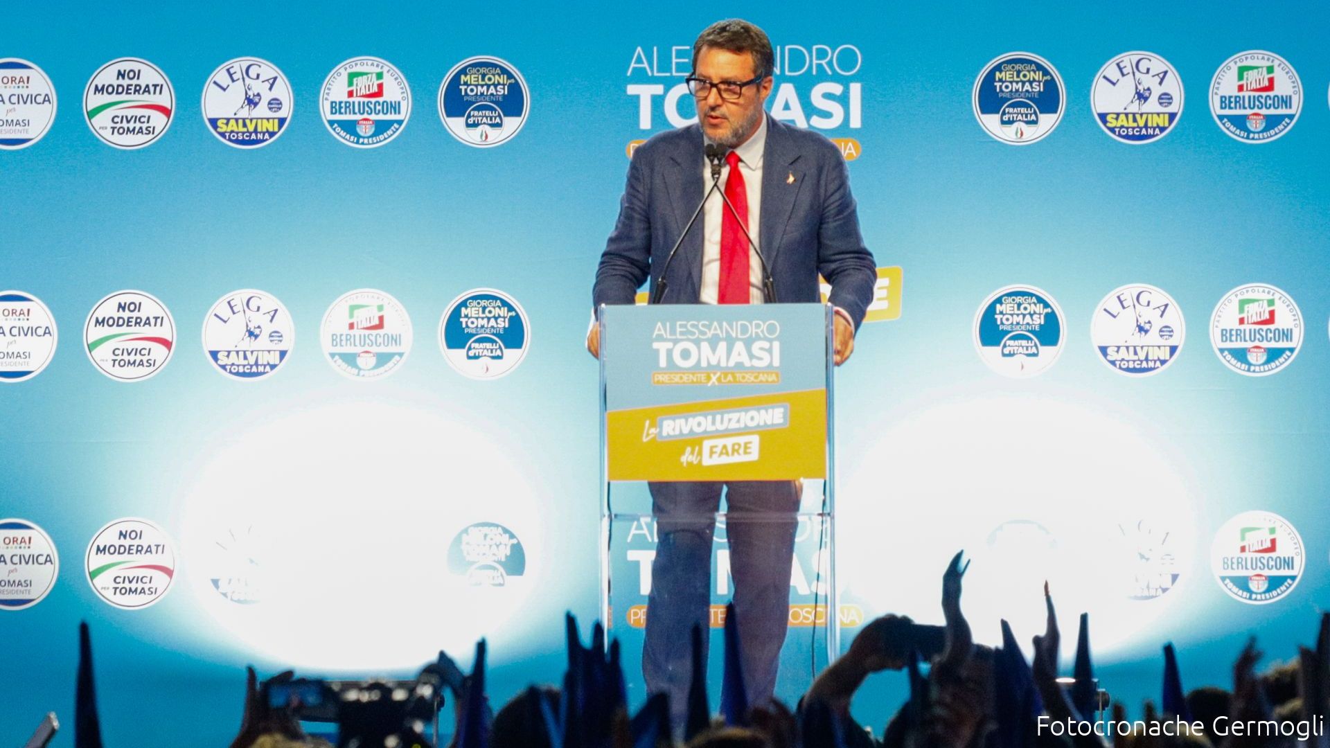 "Sono fiera di essere su questo palco per Alessandro Tomasi, una persona che conosco da anni, cresciuta con me. Una persona per bene, un amministratore capace, che già otto anni fa ha vinto una sfida che sembrava impossibile, diventare sindaco di Pistoia dopo 72 anni di sinistra, poi riconfermato, e che oggi con generosità si carica sulle spalle una battaglia il cui risultato in molti considerano già scritto. Ma penso che la nostra storia dimostri che niente è scritto e che non ci sono sfide che non si possono vincere quando si combatte davvero. Siamo nati per stravolgere i pronostici, è quello che vogliamo fare in Toscana".