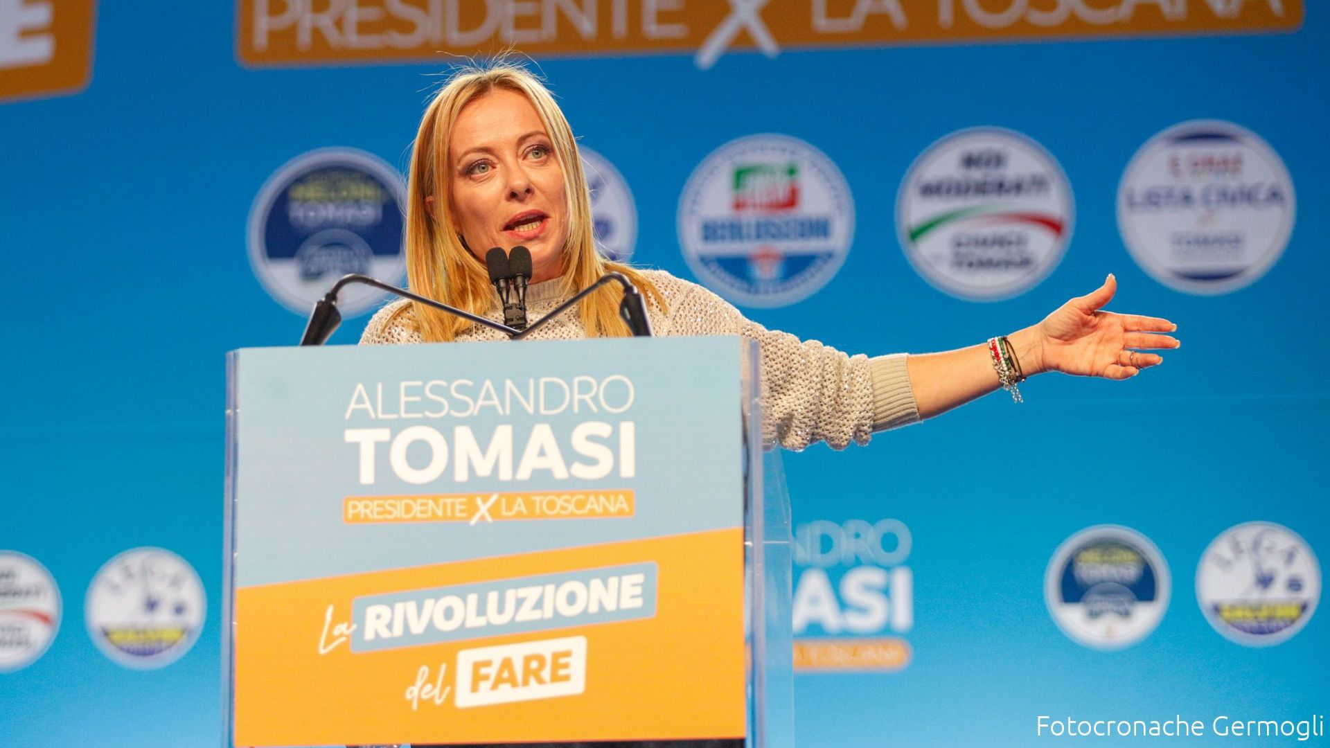 Dopo Salvini è la volta della premier e leader di Fratelli d'Italia Giorgia Meloni, accolta dal coro "c'è solo un presidente". "Siete meravigliosi, vi voglio un gran bene, e sappiate che solo per l'amore che ho per voi, riesco a fare la vita che sto facendo. Vi devo ringraziare perché questo affetto in mezzo alla nostra gente fa la differenza, vedere questa piazza meravigliosa dà soddisfazione, perché in questi giorni avevano scritto che saremmo andati a caccia di una piazza per la chiusura in Toscana, pensavano che non avremmo avuto il coraggio di fare un comizio in pieno centro a Firenze, ma noi siamo persone che si possono permettere di scendere in piazza ovunque e di guardare la gente negli occhi a testa alta. Smentire le bugie della sinistra è la nostra disciplina. Siamo in piazza nel cuore di Firenze e l'abbiamo riempita con la nostra gente e il nostro amore per una terra che merita un futuro all'altezza della sua gloriosa storia. Ci vedete uniti su un palco a combattere insieme un'altra battaglia, fieri di essere l'uno al fianco dell'altra e di metterci la faccia insieme, a differenza di quello che accade a sinistra, dove si fanno gli accordi di palazzo ma dove non si ha il coraggio di scendere in piazza insieme. Loro hanno solo il collante dell'odio verso di noi, liberarsi di noi per tornare a gestire il potere, ma non ci dicono per farci cosa".