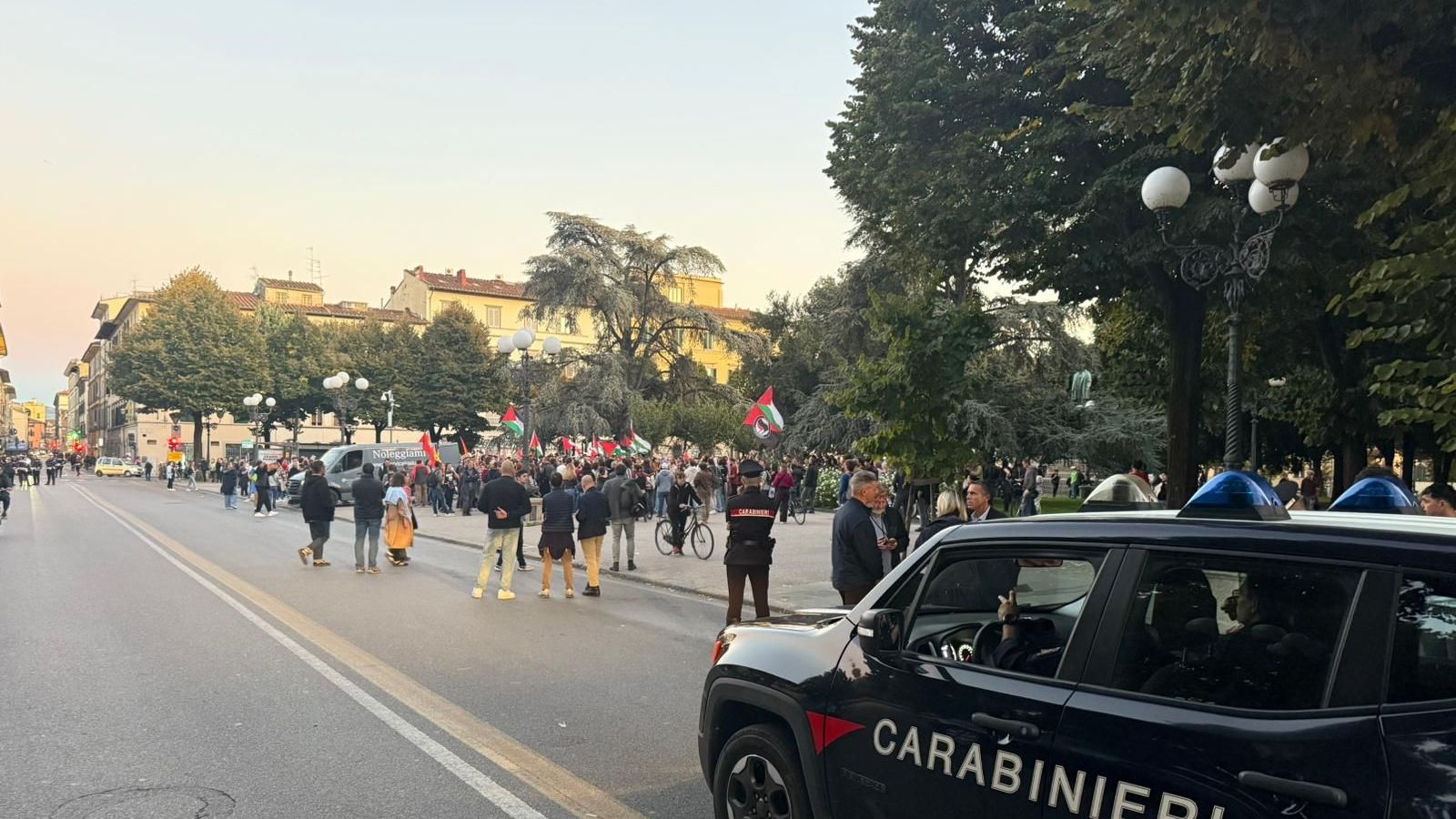 Poco lontano dalla piazza dell'evento del centrodestra, la contestazione organizzata da Assemblea per lo sciopero e rilanciata da diverse realtà, come Firenze Antifascista, Firenze per la Palestina, USB Firenze e Giovani palestinesi Firenze: "Meloni, Salvini, Tajani Firenze un vi vole!". Dalle 18.30 è iniziato il concentramento in piazza Indipendenza. Dopo le 19 il corteo, aperto dallo striscione "Fermiamo il sionismo con la resistenza" è partito, percorrendo viale Strozzi e proseguendo su viale Belfiore, piazzale di Porta a Prato, Il Prato, via Curtatone. Alla manifestazione, che va ingrossandosi, stanno partecipando alcune migliaia di persone.