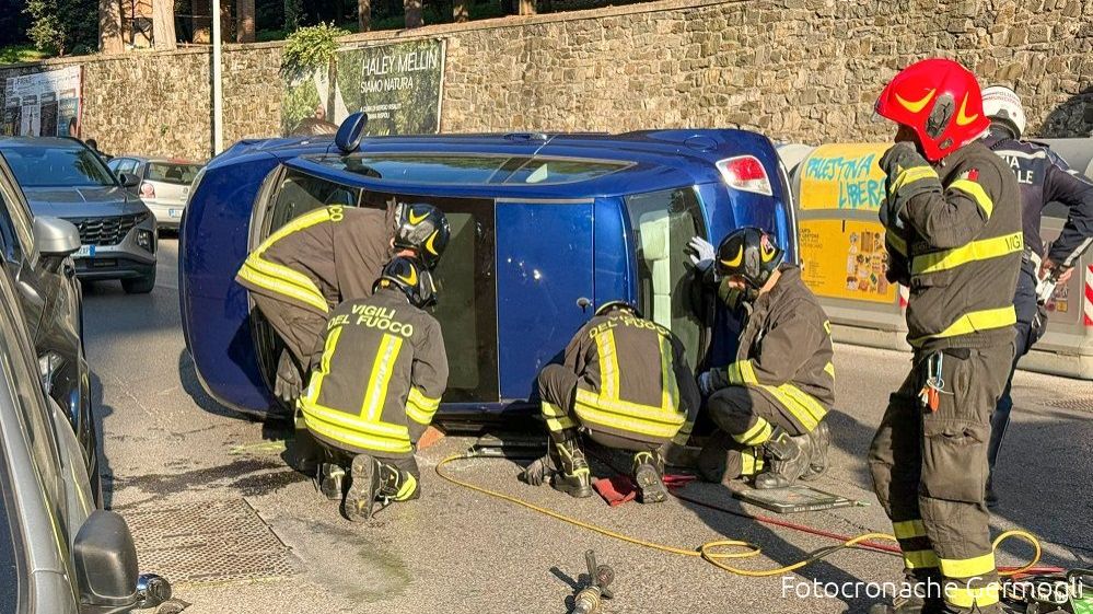 La vettura coinvolta si è ribaltata su un fianco al centro della strada, all'altezza del civico 185, bloccando la circolazione veicolare e creando disagi al traffico fiorentino.