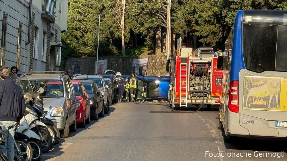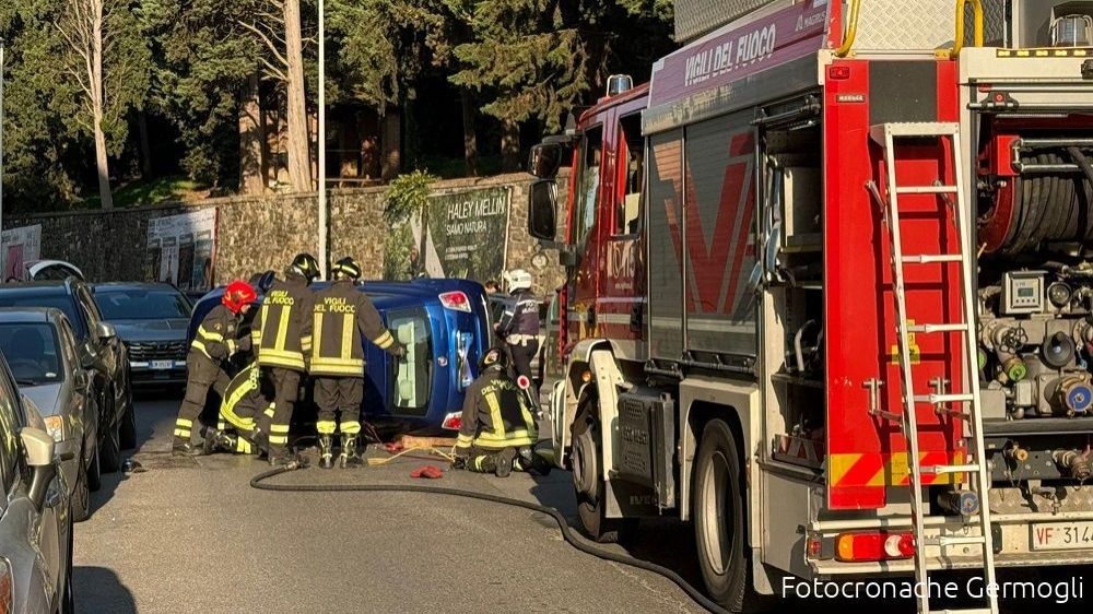 Firenze, incidente con auto ribaltata in via Vittorio Emanuele II: disagi al traffico