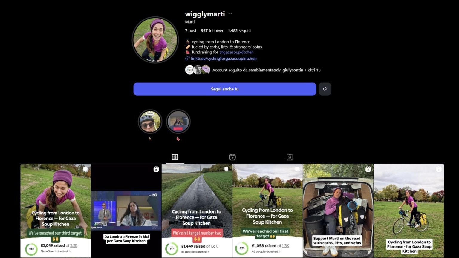 Da Londra a Firenze in bicicletta, con un messaggio di solidarietà che attraversa l’Europa. E' il viaggio di Martina, che dopo sette anni vissuti nella capitale inglese, ha deciso di salutare quella città in modo speciale: pedalando verso casa per sostenere Gaza Soup Kitchen, un’organizzazione che ogni giorno distribuisce migliaia di pasti alle famiglie palestinesi colpite dalla guerra. Il suo viaggio, iniziato quasi per gioco — per non separarsi dalla sua amata bicicletta — è diventato presto un gesto politico e umano insieme: un percorso di libertà, gratitudine e connessione con gli altri.