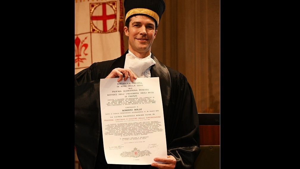 Roberto Bolle ha ricevuto questa mattina, martedì 28 ottobre, nell’Aula Magna dell’Università di Firenze, la laurea magistrale honoris causa in Pratiche, linguaggi e culture della comunicazione. Il titolo accademico è stato conferito all’étoile della Scala di Milano dalla rettrice Alessandra Petrucci, alla presenza di autorità accademiche e rappresentanti dell’Ateneo.