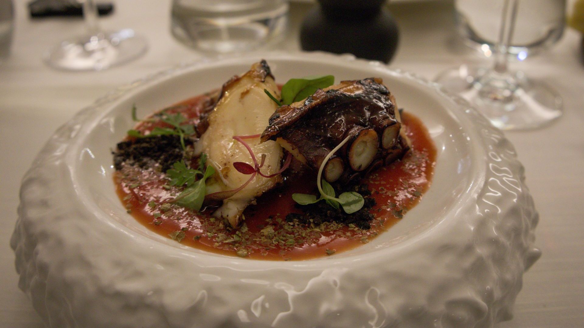 Dietro a questa abbondanza di qualità c'è un lavoro che inizia all'alba. Non è raro che lo chef sia in cucina già dalle 9 del mattino, perché questa cucina contemporanea richiede tempi lunghissimi: cotture a basse temperature, riduzioni che sobbollono per giorni, come il fondo bruno per l'incredibile coniglio in doppia cottura. Persino un piatto apparentemente semplice come il polpo alla pizzaiola nasconde tre giorni di preparazione meticolosa.