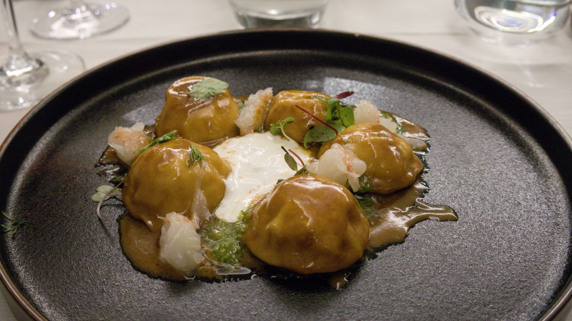 I due titolari, Tommaso Tazzioli, un trentenne visionario, e lo chef Matteo Stellato, suo coetaneo e con quindici anni di esperienza alle spalle, hanno fatto della cura del dettaglio il proprio tratto distintivo. Pensate a un fungo porcino che, nel piatto, ha un costo d'acquisto praticamente da gioielleria, o a gamberi rossi freschissimi che viaggiano dall'oceano alla tavola. Uno degli aspetti che colpisce maggiormente è che, pur lavorando con ingredienti di alta qualità, le porzioni non sono certo "assaggi d'autore". Come ha notato un cliente entusiasta, qui si trovano “piatti gourmet con porzioni da trattoria". I bottoni di pasta fresca all’uovo, ad esempio, sono un'esplosione di gusto e generosità: ogni pezzo è una piccola opera d'arte dal peso specifico importante (25-30 gr ciascuno), per un piatto che non lascia certo spazio a fame residue.