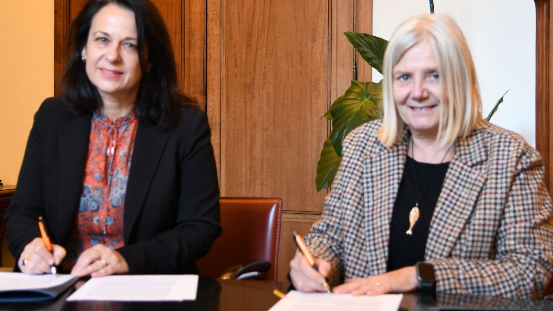 In foto la sindaca di Scandicci Claudia Sereni e la rettrice dell'Università di Firenze Alessandra Petrucci firmano l'accordo