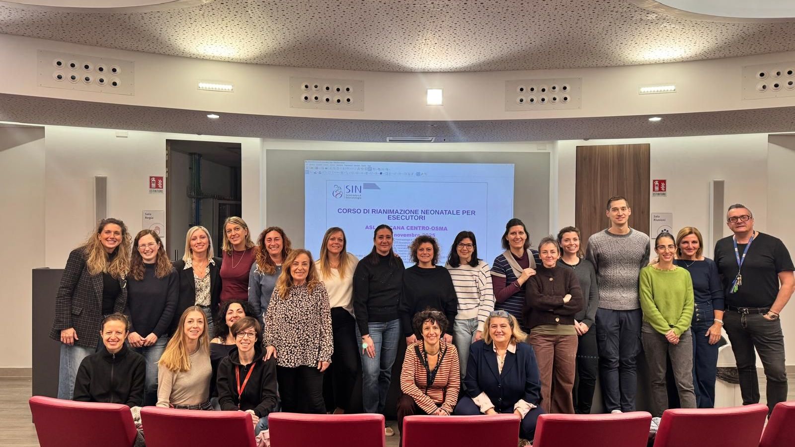 Nell’Auditorium è stato ricreato un ambiente realistico con NINA un simulatore neonatale ad alta fedeltà che riproduce suoni e si muove come un neonato vero, e con un simulatore del neonato prematuro. Tutto il personale sanitario nelle sessioni pratiche è stato coinvolto nell’individuare eventuali errori e nel correggerli in tempo reale. L’obiettivo è di omogeneizzare i comportamenti assistenziali di tutti gli operatori che girano attorno alla sala parto o al neonato, aggiornando il personale alle ultime linee guida internazionali sulla rianimazione neonatale. Domani si terrà la giornata finale.